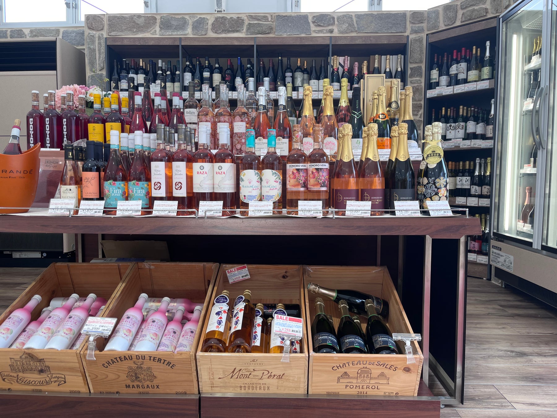 店内は空間デザインにもこだわり、実際の石材を使用した石壁を取り入れるなど、上質で落ち着きのある雰囲気を演出。ワインや日本酒が持つ世界観やストーリーを感じながら商品を選べる空間となっています。