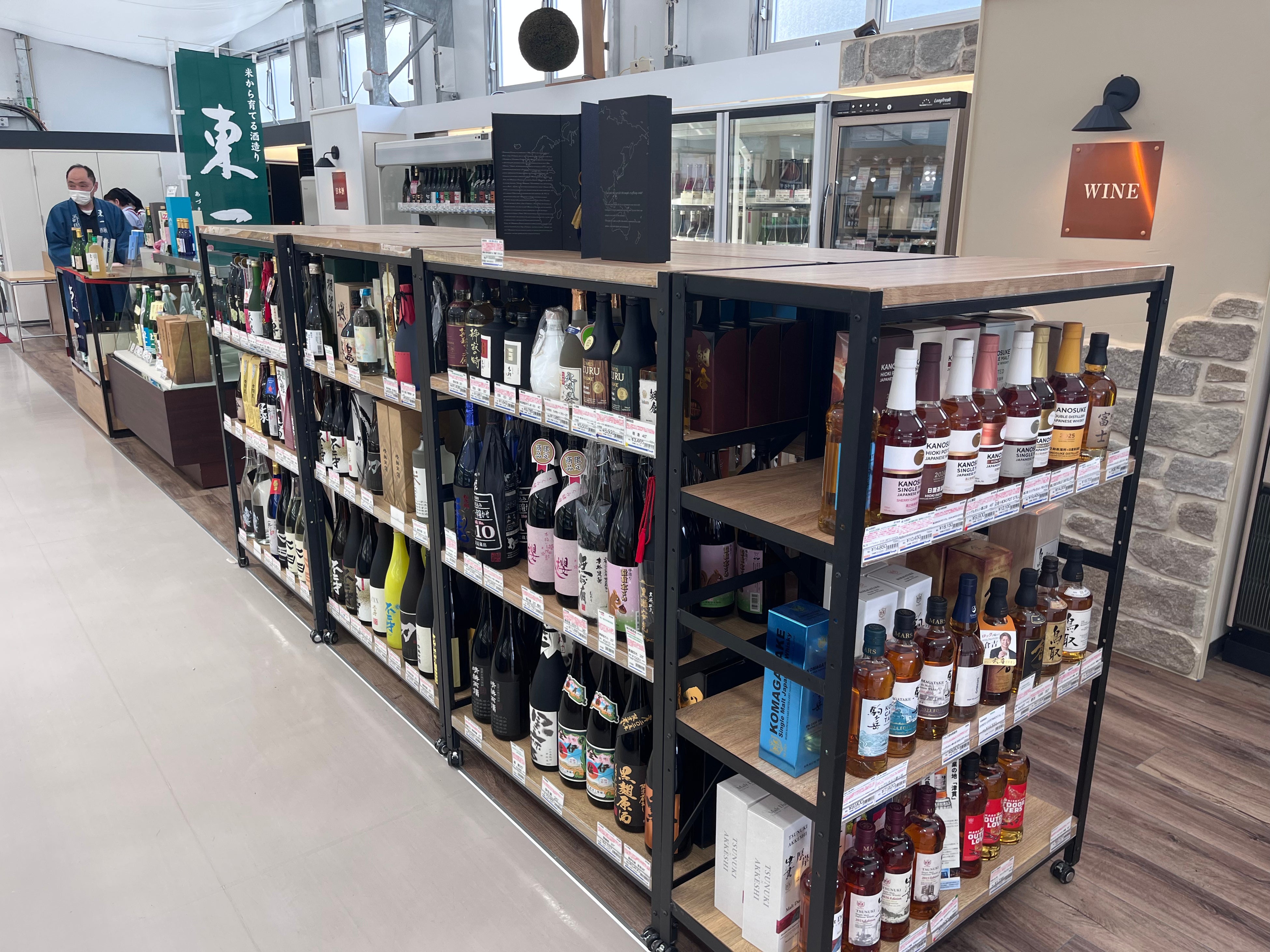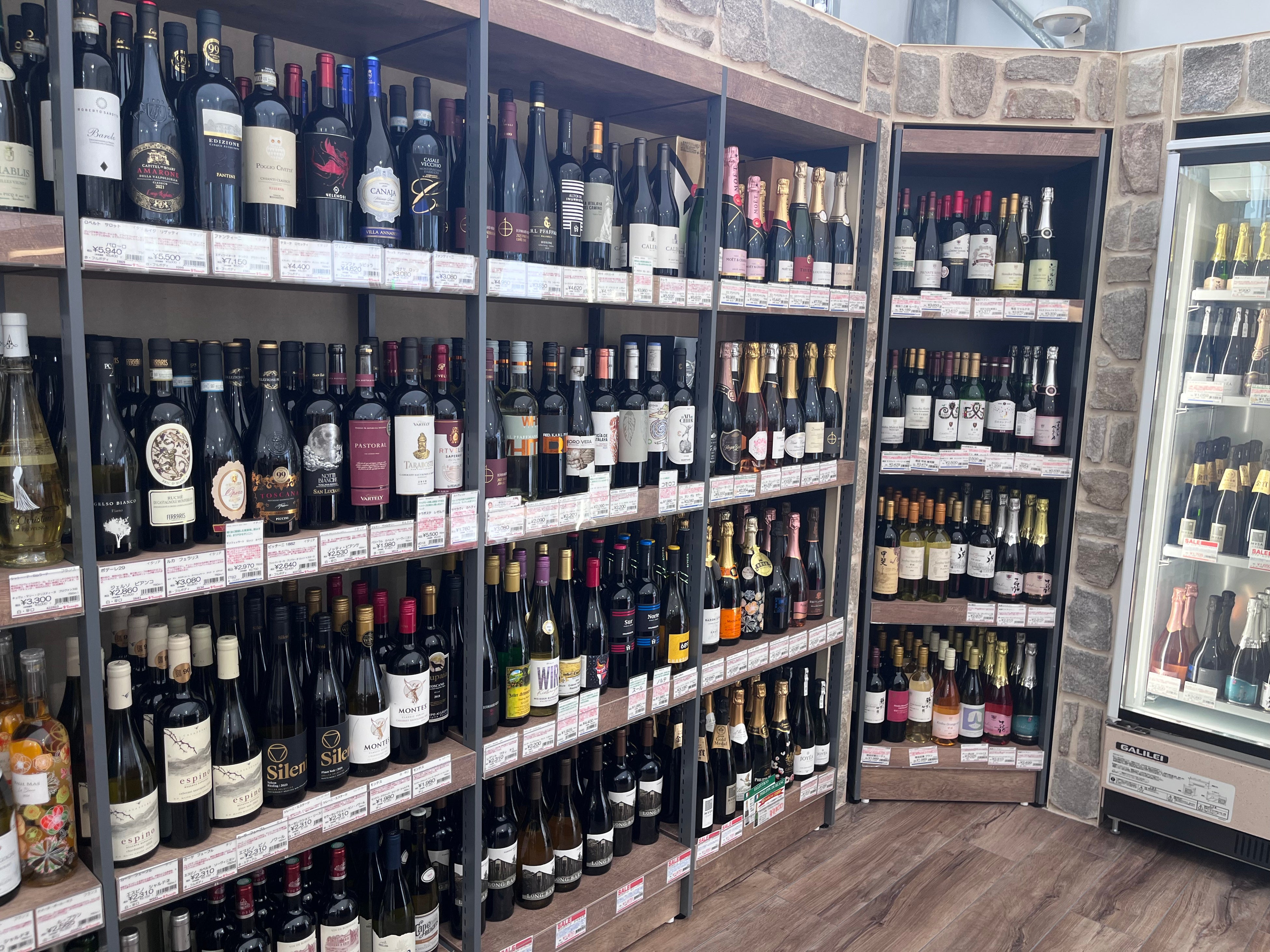 店内は空間デザインにもこだわり、実際の石材を使用した石壁を取り入れるなど、上質で落ち着きのある雰囲気を演出。ワインや日本酒が持つ世界観やストーリーを感じながら商品を選べる空間となっています。