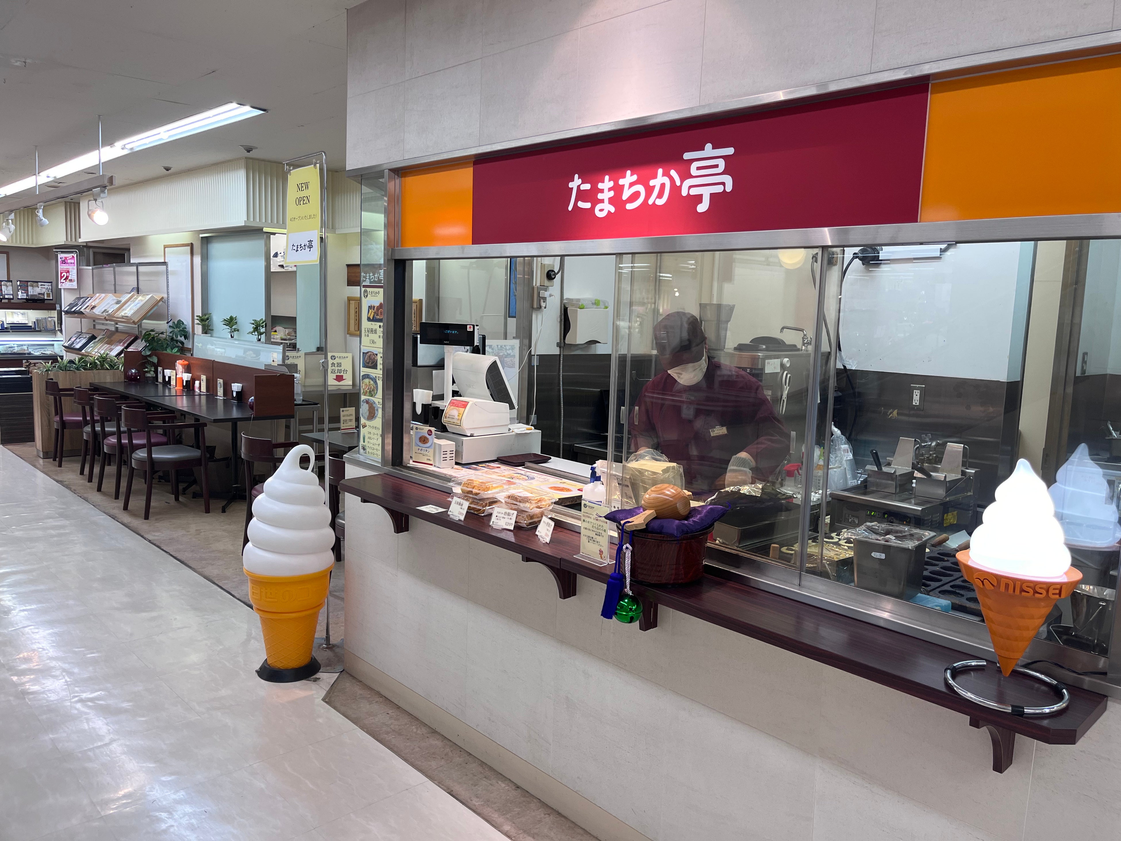 店頭では「玉屋まんじゅう」の復刻販売をはじめ、気軽に楽しめる軽食メニューを提供し、買物の合間に立ち寄れる利便性の高い空間となっています。