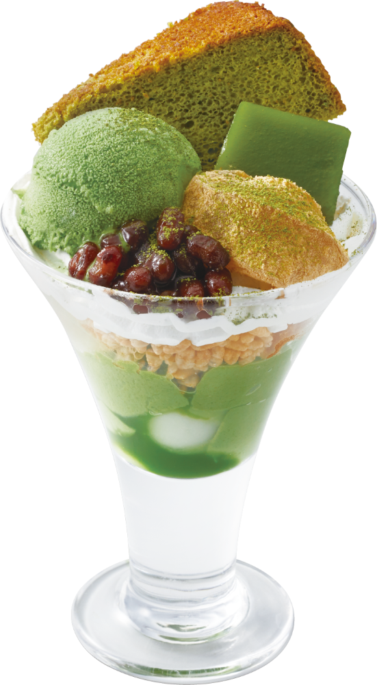 抹茶アイスクリームに、抹茶シフォンケーキなど、抹茶を存分に味わえる至高のパフェ。