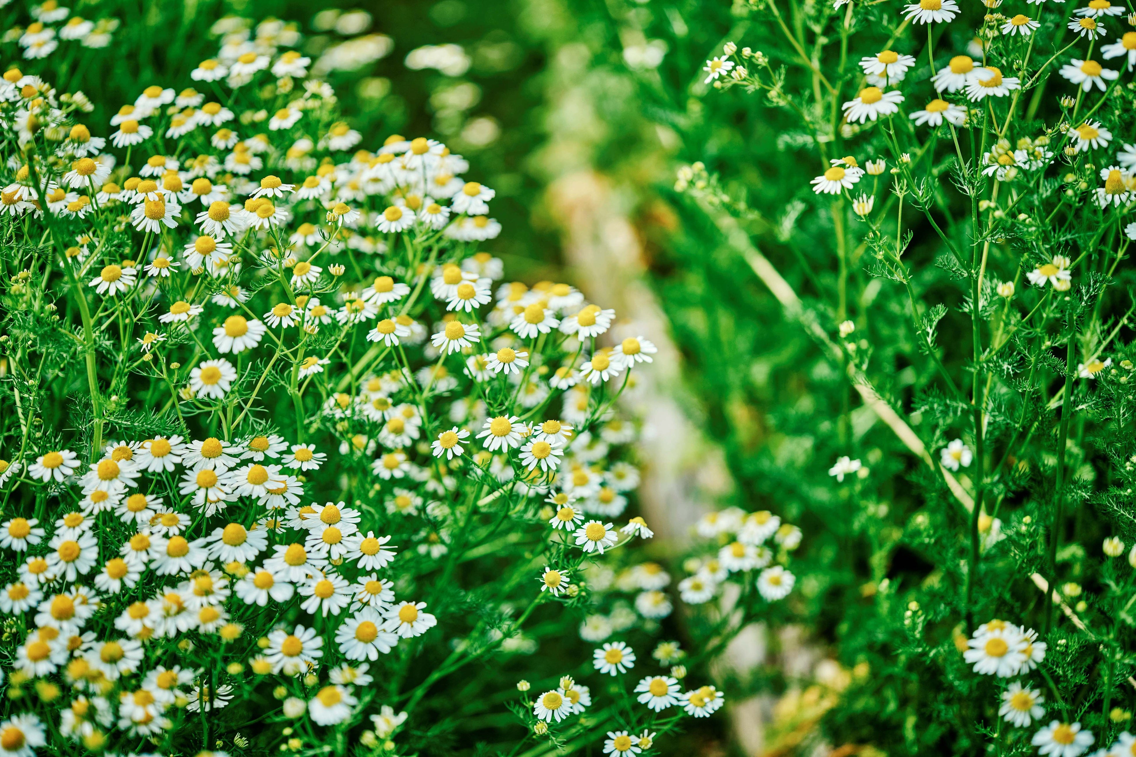 カモミールの甘い香りに包まれる春の段々畑:5月上旬~6月上旬(四季の庭-よろこびの庭-)