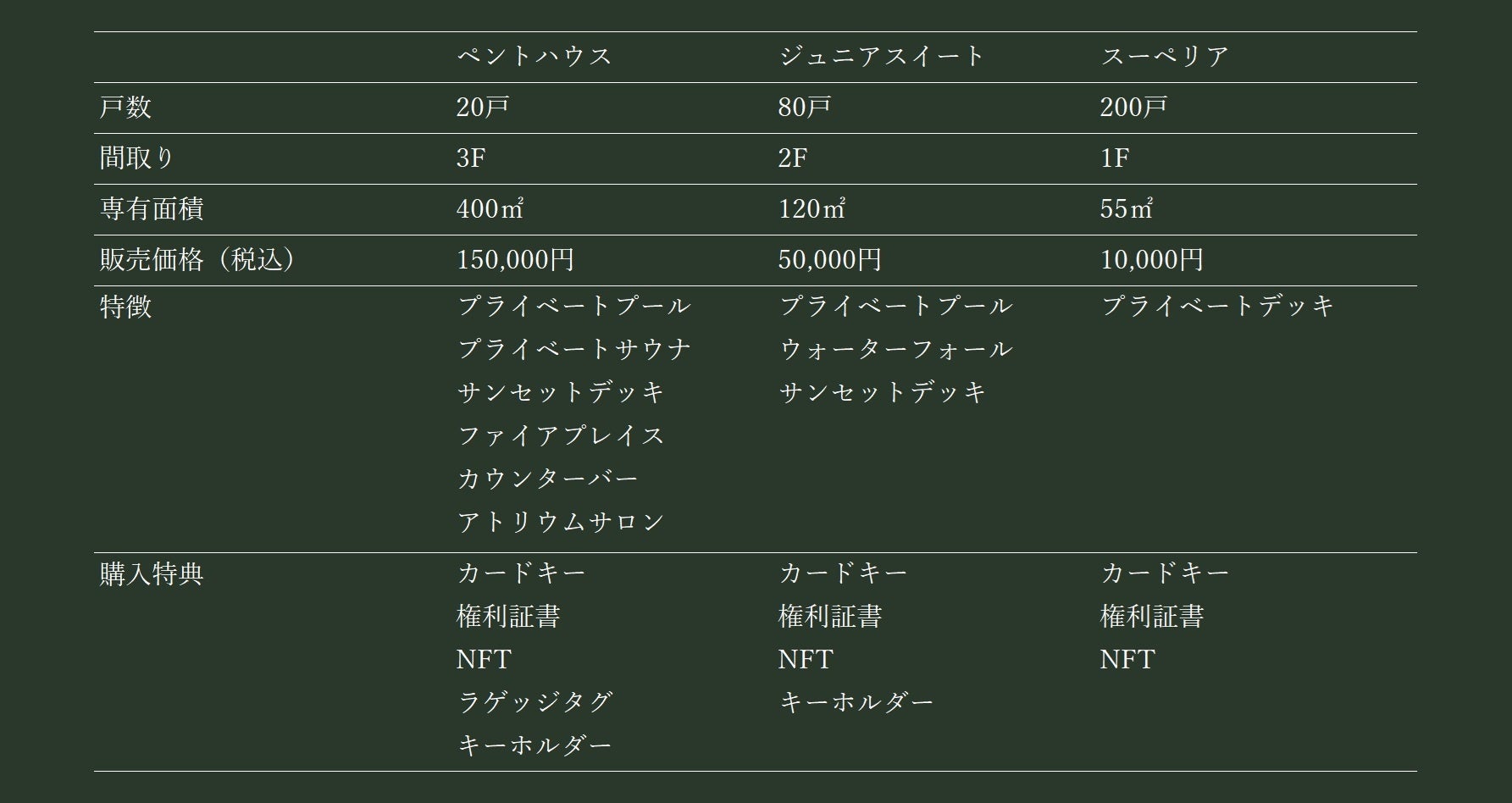 ①ペントハウス(限定20戸):150,000円(税込)
