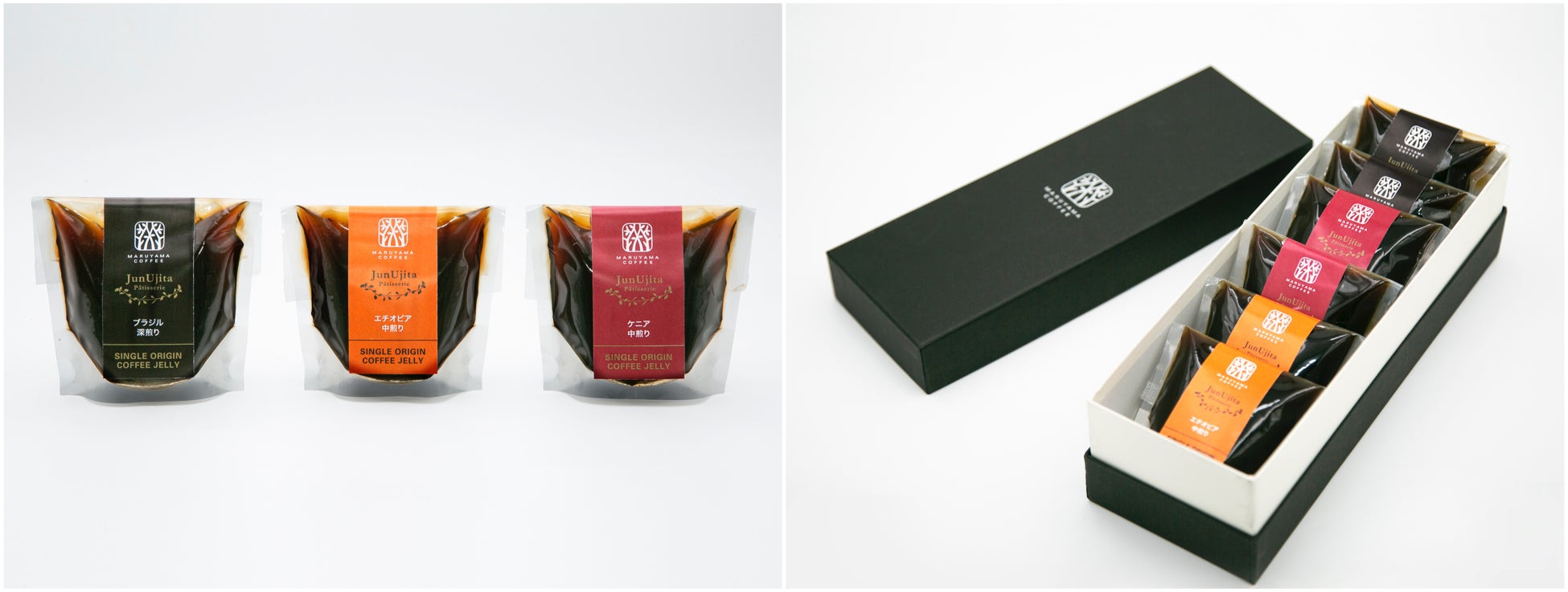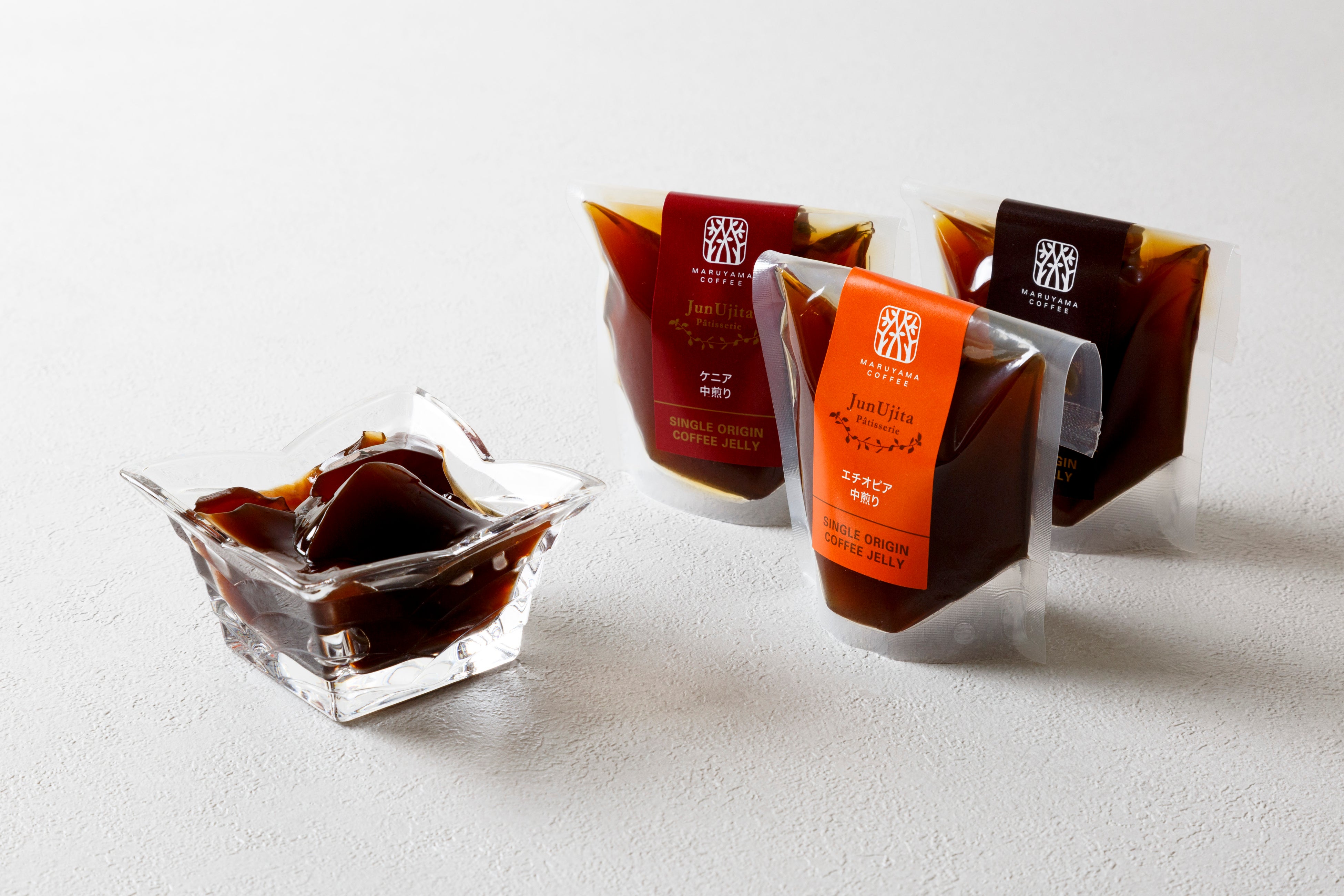 東京・碑文谷の「パティスリー ジュンウジタ」とのコラボレーションから生まれた、2014年より続く、特別なコーヒーゼリーです。 個性豊かなシングルオリジンコーヒーの魅力を最大限に引き出すため、フレンチプレスで一つひとつ丁寧に抽出し、コーヒーゼリーに仕立てています。製造のたびに豆の挽き目や抽出時間を細かく調整し、挽きたてのコーヒー豆を使用することで、まるで“食べるコーヒー”のような、香り高く奥行きのある味わいに仕上げました。