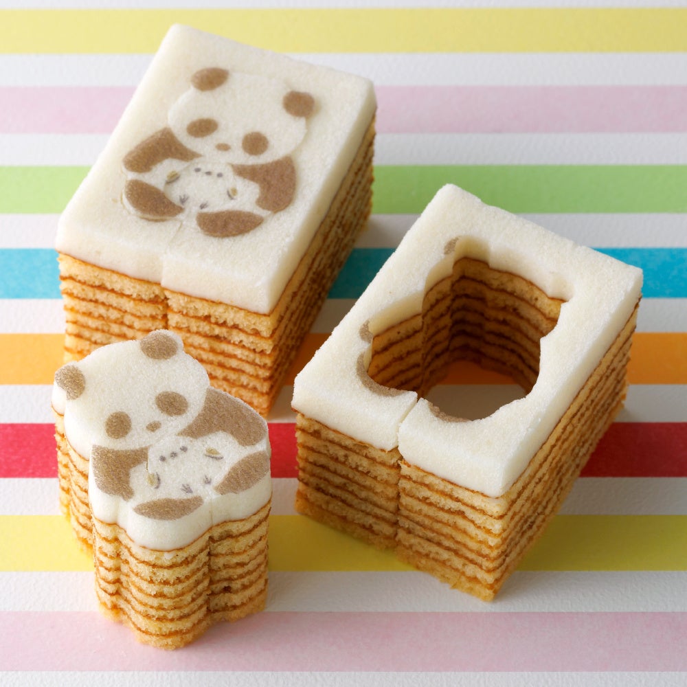 北海道の冬の妖精・シマエナガと、パンダの型ぬきバウムです。卵のやさしい風味がふんわり広がるプレーンの味わい。