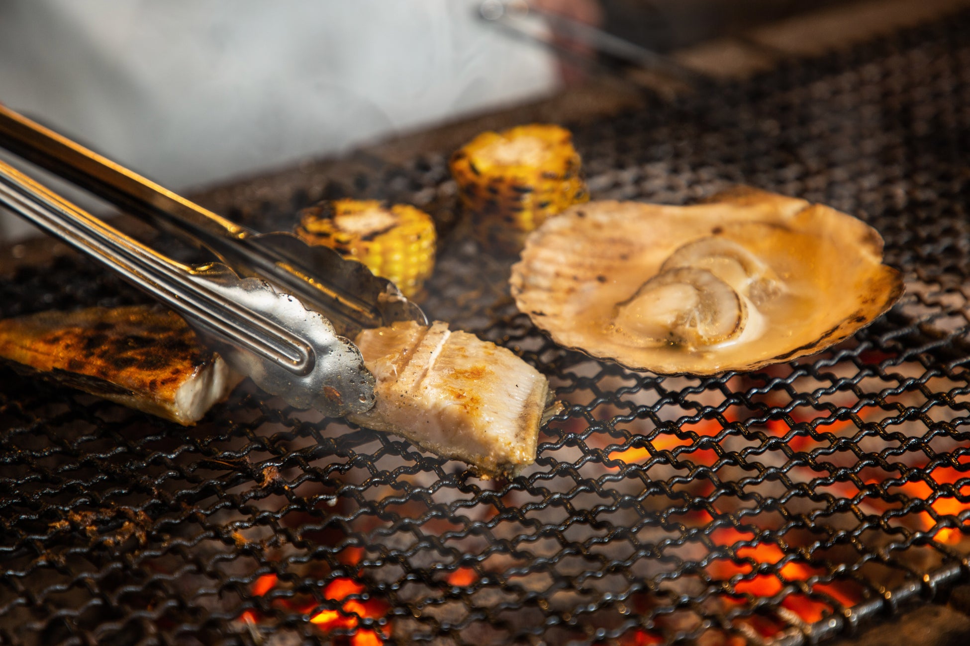 濃厚な甘みが魅力の身を、炉端の炭火でじっくり炙り、香ばしさと旨みを引き出します。
