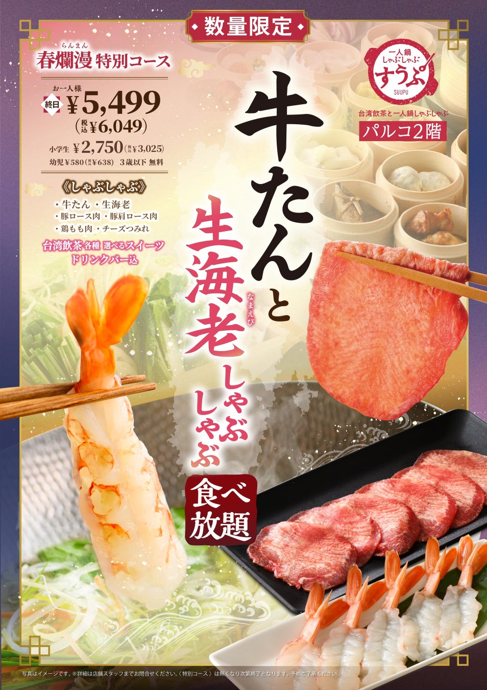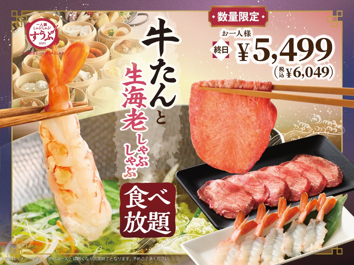 この度、2026年4月16日(木)より数量限定にて『牛たん』と『生海老』のしゃぶしゃぶが食べ放題で堪能できる春爛漫 特別コースが新登場!
