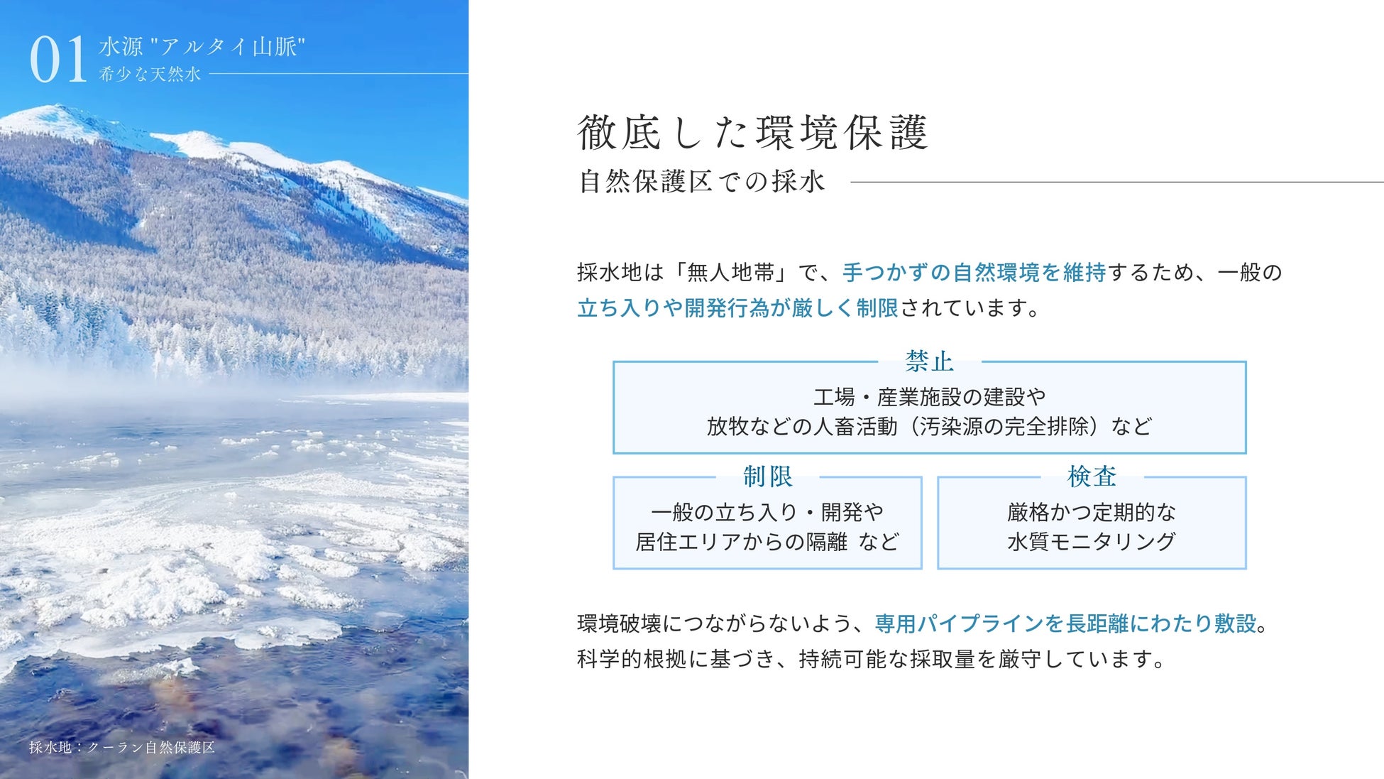 採水地は、氷点下の環境が常態化する水資源保護区という“過酷な聖域”。