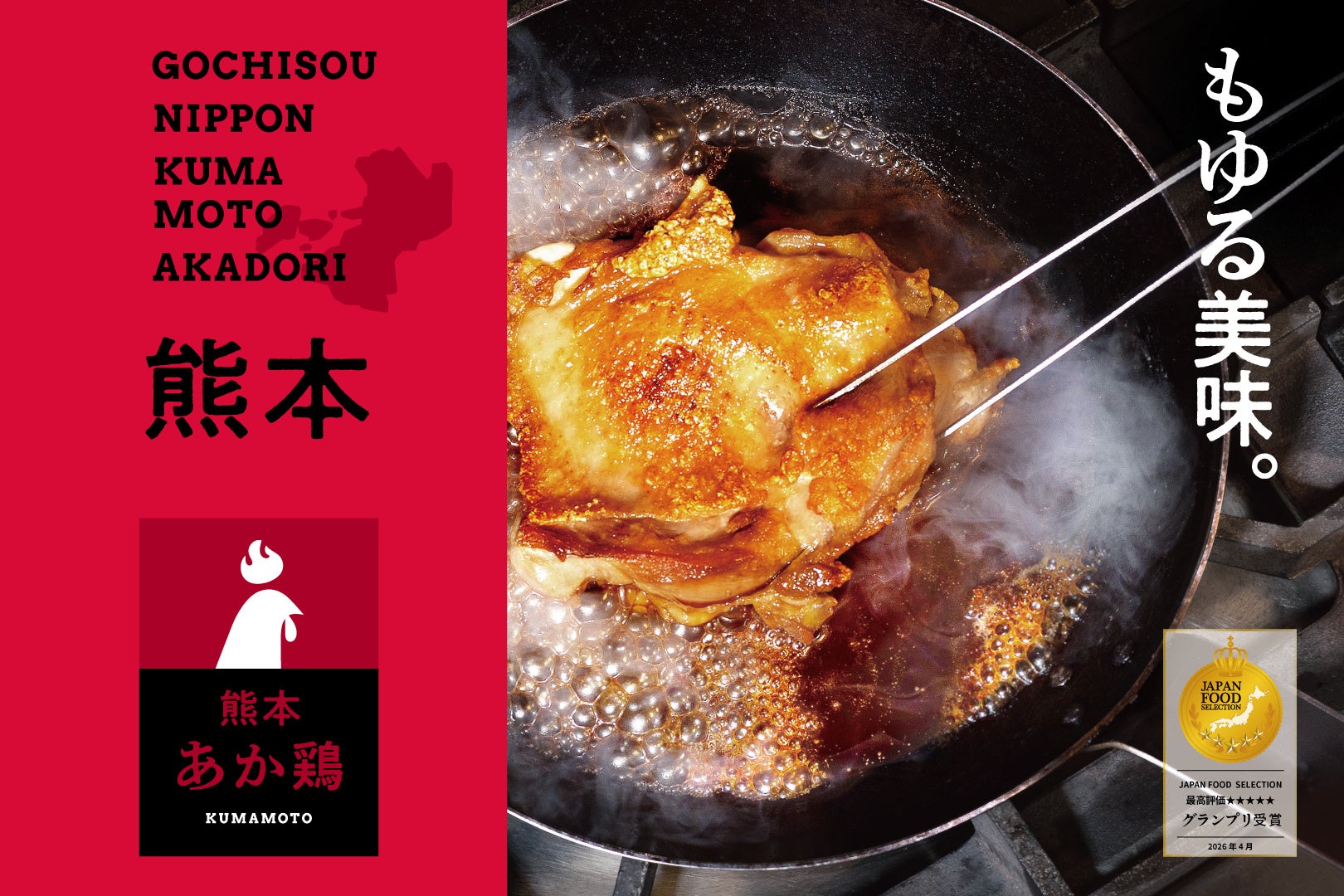 この度、やまうちフード株式会社(本社:熊本県山鹿市 取締役社長:岡本浩司)が販売する銘柄鶏「熊本あか鶏」が、2026年4月、2万3千人のフードアナリストが審査する国内最大規模の食品審査機関「ジャパンフードセレクション」において、もも肉・むね肉・ささみ・手羽先・手羽元の5部位すべてで最高位の【グランプリ】を受賞いたしました。