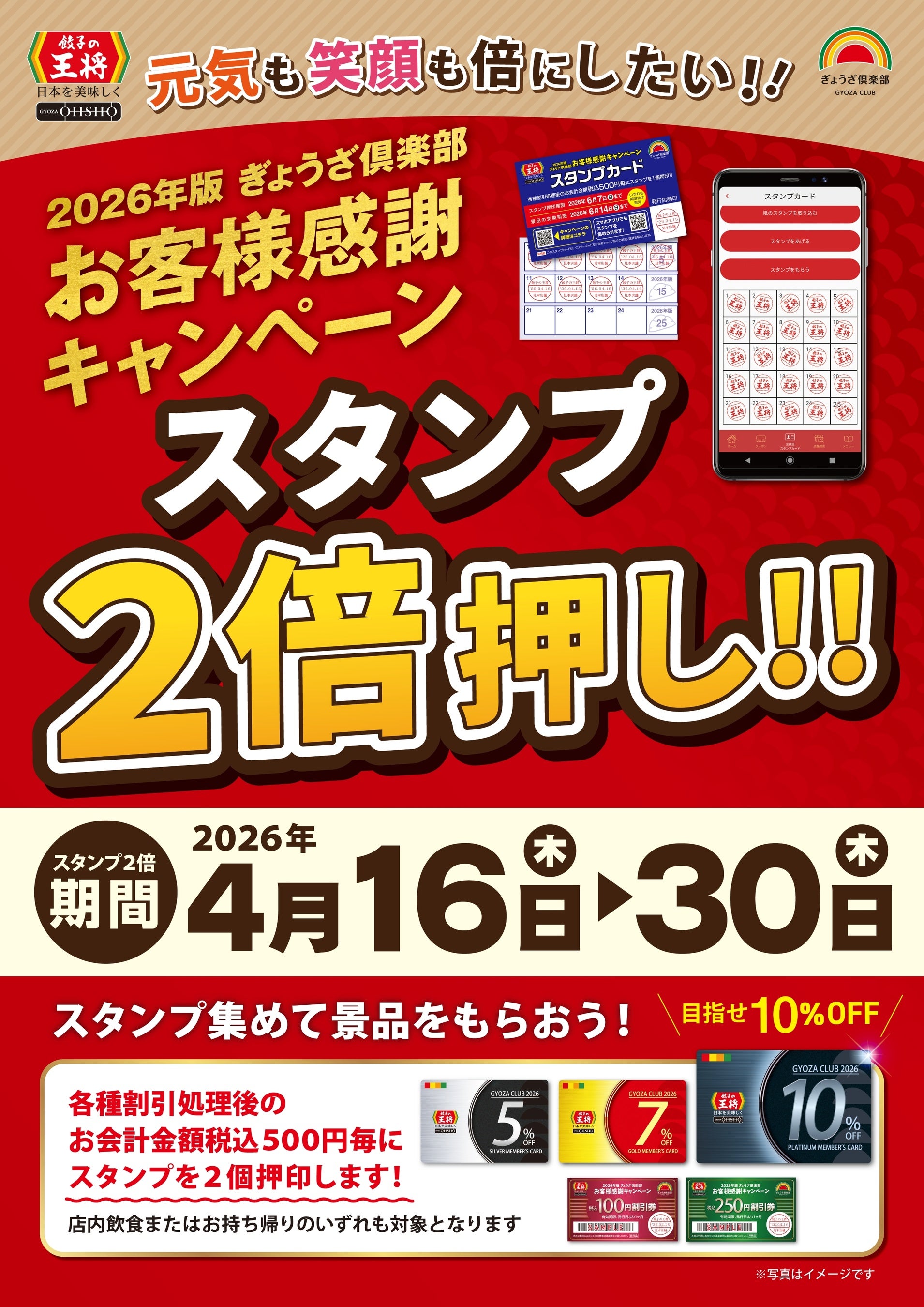 この度、4月16日(木)から4月30日(木)の期間限定で、「2026年版 ぎょうざ倶楽部 お客様感謝キャンペーン」のスタンプを、