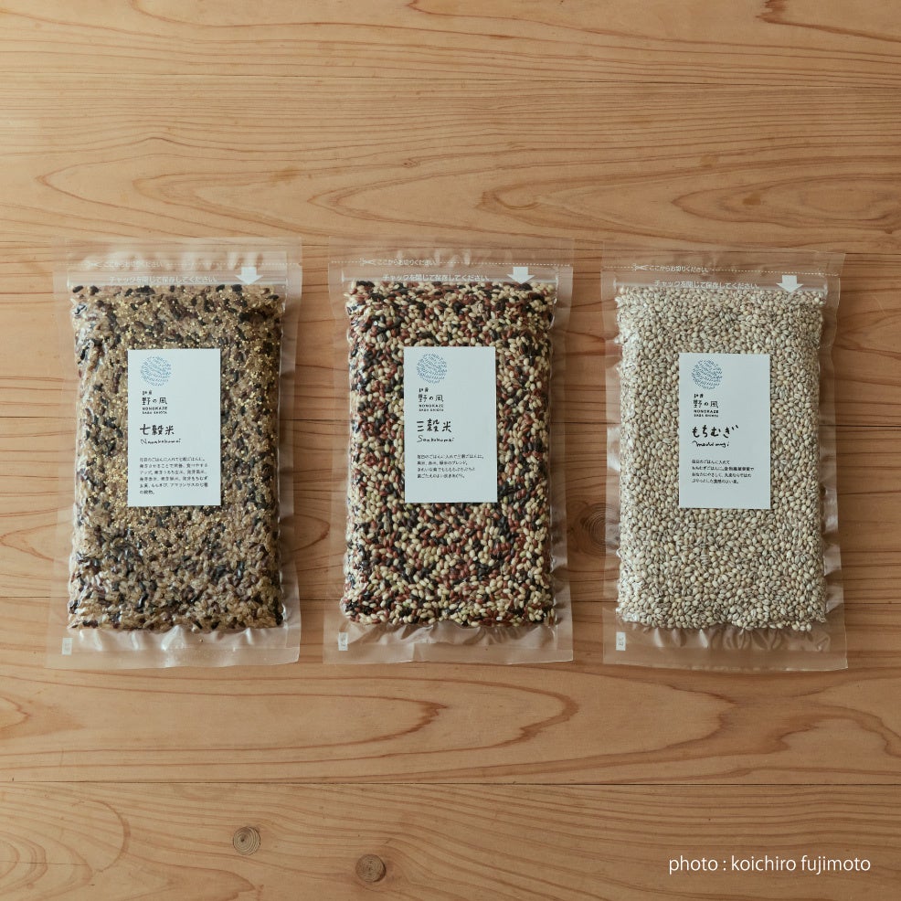 七穀米はやさしい食感で初心者にも食べやすく、三穀米は赤米・黒米・緑米の風味が特徴で浸水して炊くとより美味しく、カレーにもよく合います。