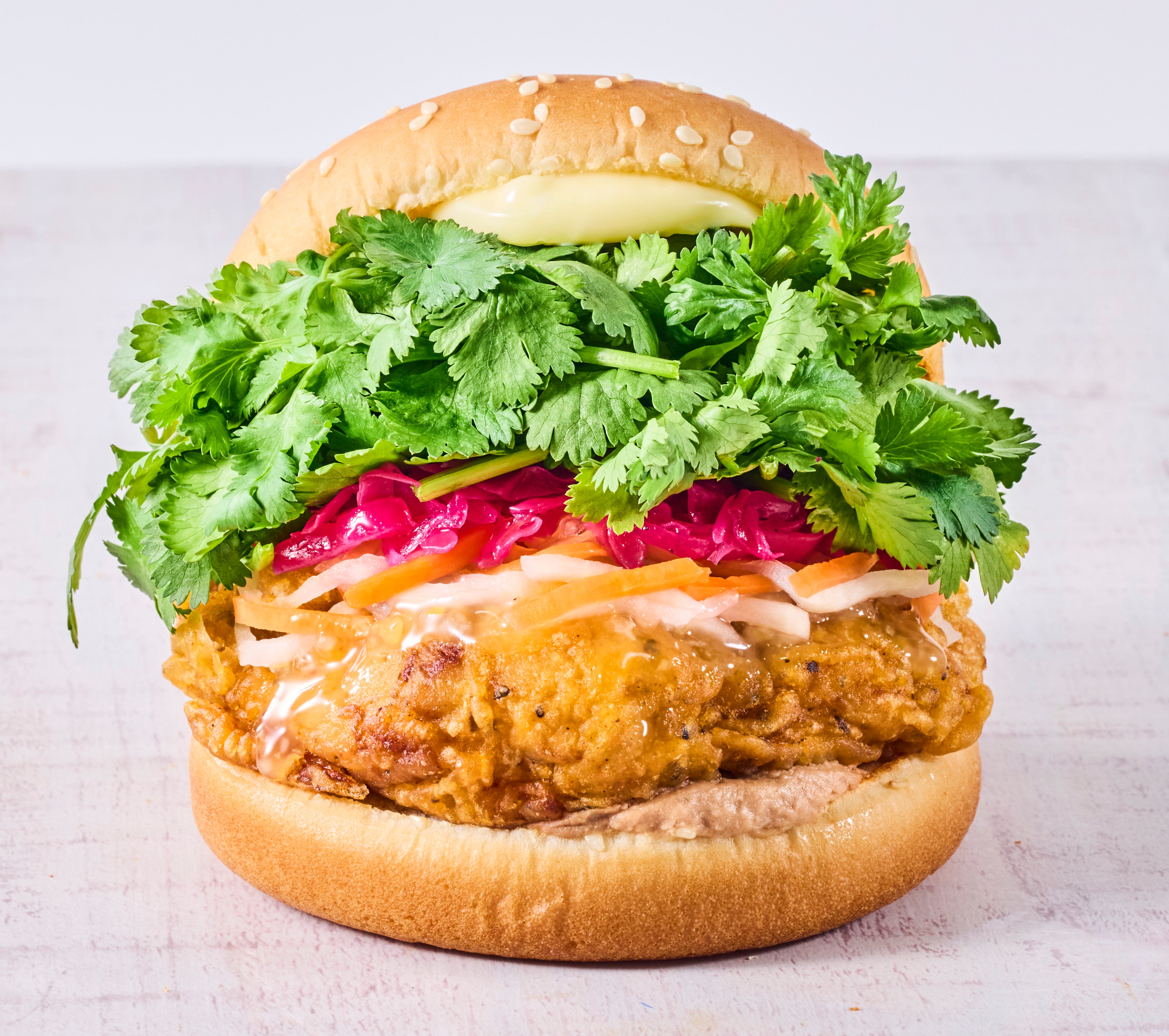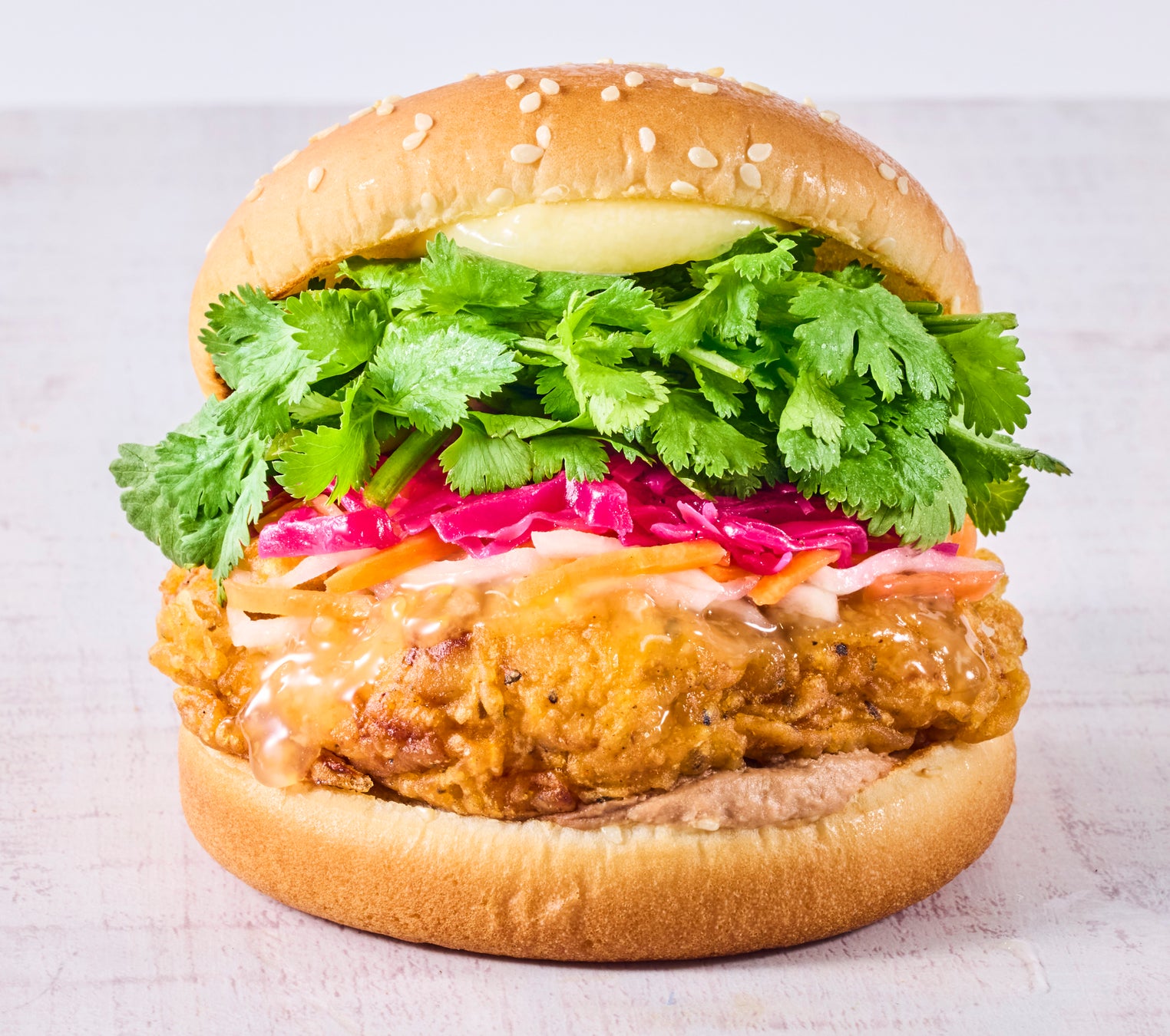 復活バーガー1位獲得の「パクチーチキンバーガー バインミー」は、昨年に高い支持を集めた実力派。クリスピーチキンに、レバーペーストのコク、ほどよい酸味のなます、紫キャベツのマリネを重ね、五香粉とナンプラーで本場の味を表現。そこへパクチーの爽やかな香りが重なり、奥行きのある味わいに仕上げました。どちらも、パクチーの量はお好みで選択可能。少しだけ香りを楽しみたい方から、思いきり堪能したい方まで、自分好みの味に仕上げられます。ファンの声から生まれた、特別なパクチー体験をお楽しみください。