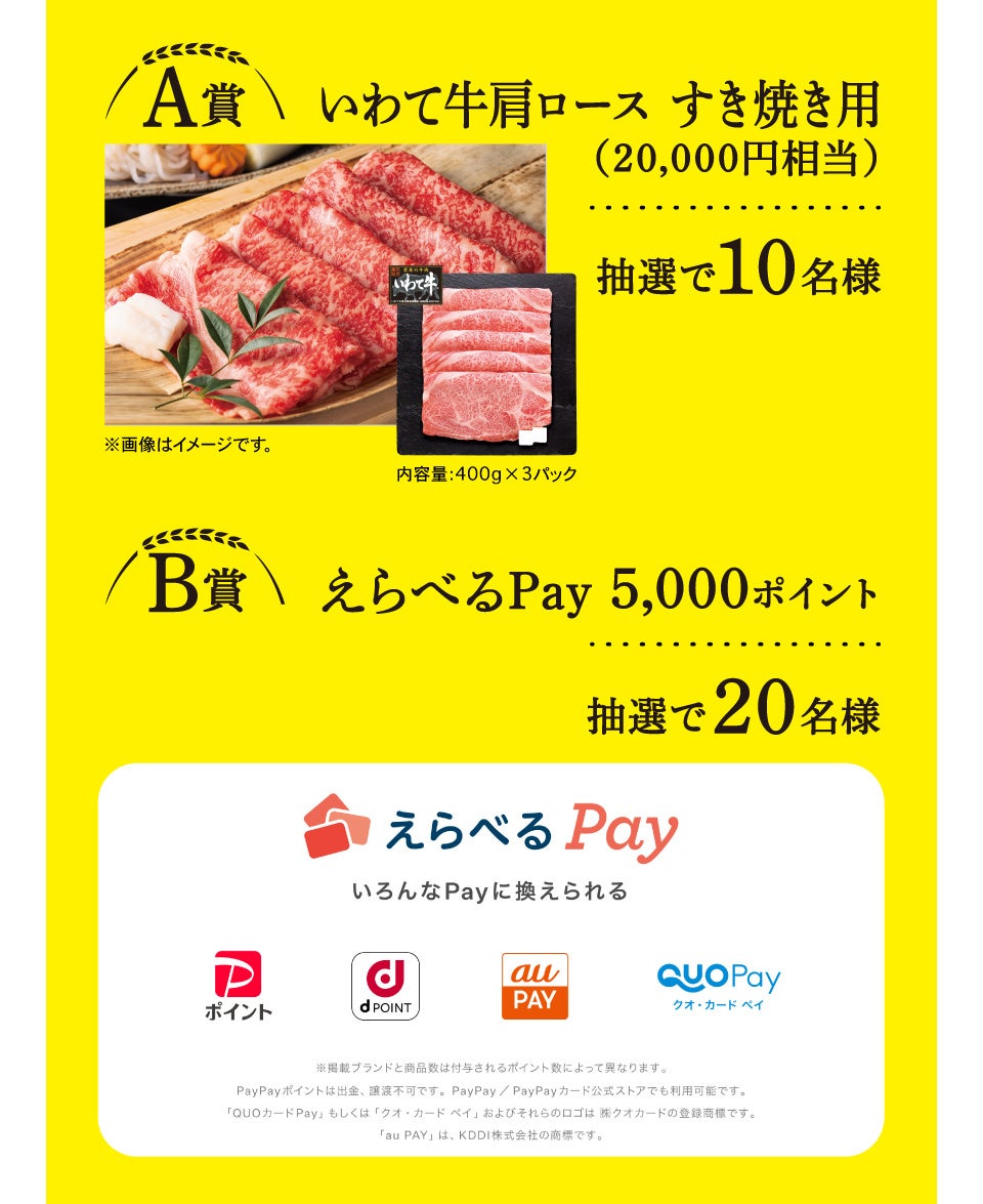 A賞:いわて牛肩ロースすきやき用(20,000円相当)……10名様