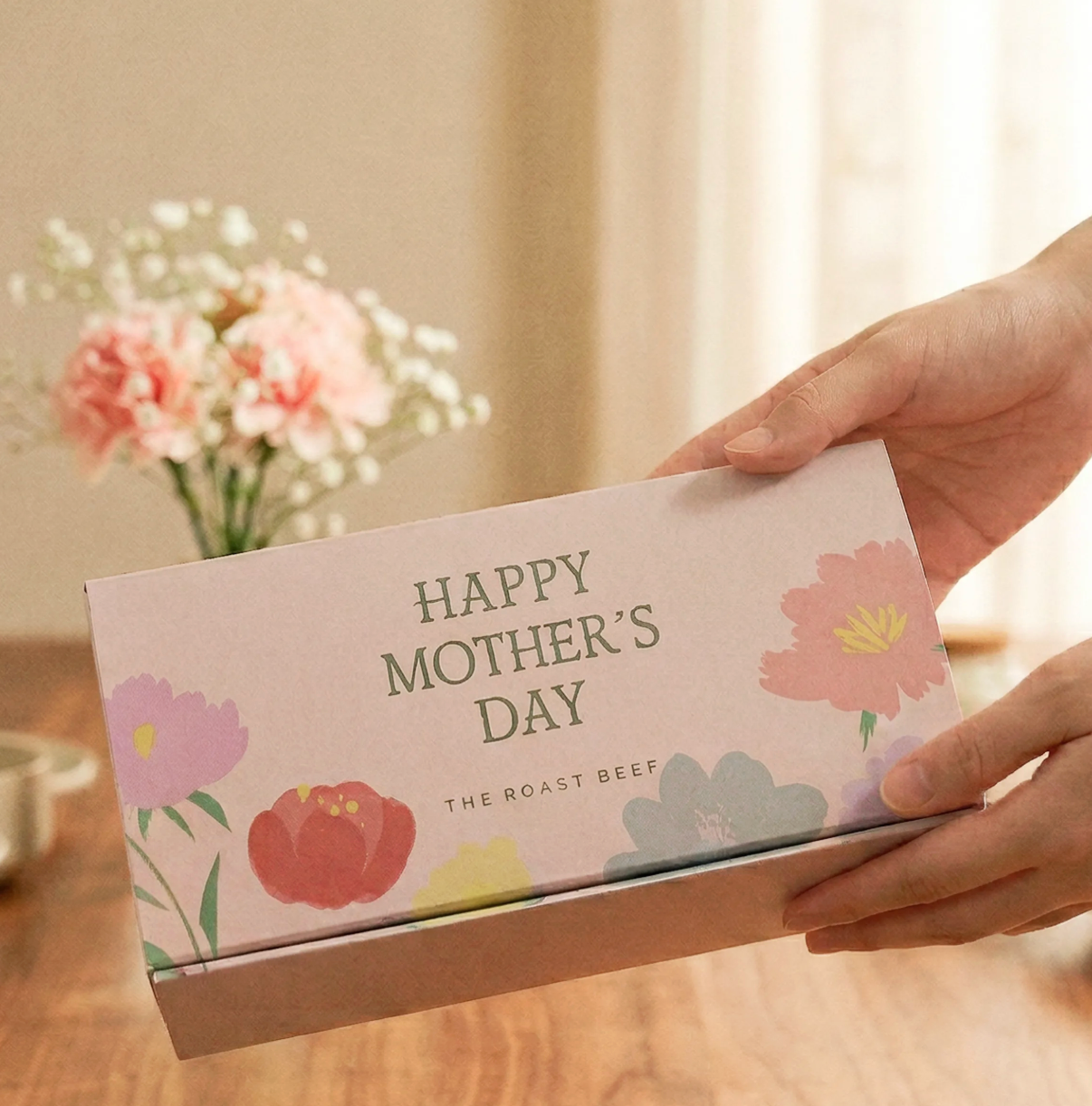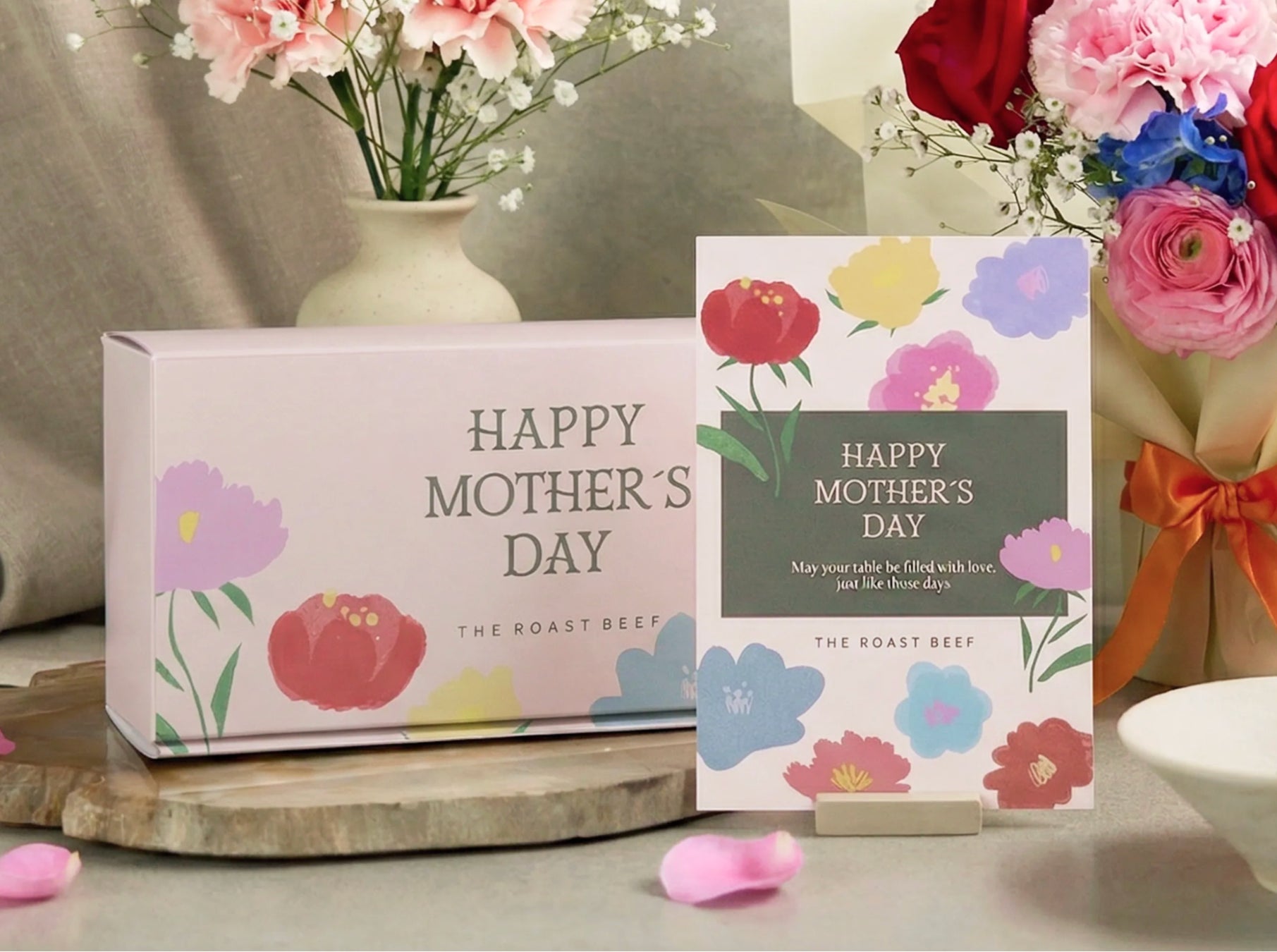 今回の母の日では、これまでのTHE ROAST BEEFの世界観を大切にしながら、より温かみのあるトーンへとデザインを見直し、送る側・受け取る側の双方が心躍るようなギフトへ、そして母の日限定パッケージにより『花束のようなBOX』をイメージし、開けた瞬間に気持ちが伝わるような設計に仕上げています。