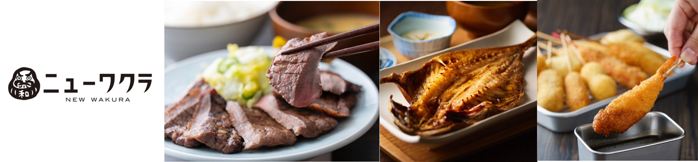 昭和の大衆食堂の温もりを、今の時代にふさわしいかたちで。「ニューワクラ」は、本場仙台仕込みの牛たんをはじめ、全国各地から取り寄せた厳選干物、大阪名物のどて焼きや串カツなどが楽しめる現代的大衆酒場食堂です。ちょい呑みも定食も気軽に楽しめる、“つい寄りたくなる一軒”が誕生します。