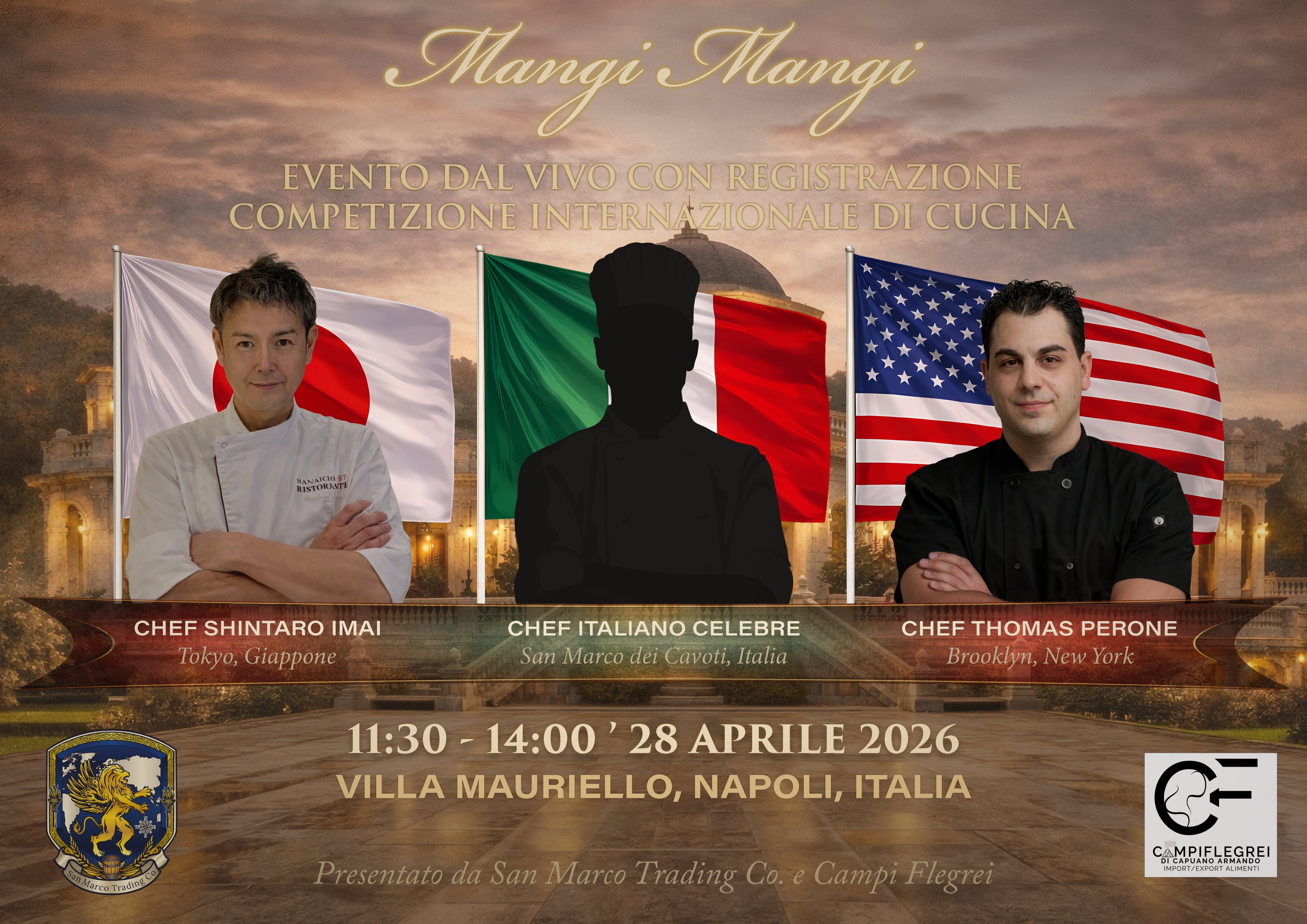 イタリアの食文化を世界へ発信するSan Marco Trading Co. LLC(本部:米国テキサス州オースティン)を含む国際共同制作チームは、2026年4月26日から28日にかけて、イタリア・ナポリを舞台とした新感覚の料理番組『Mangi Mangi: From Napoli, With Love』のパイロット版を収録することを発表いたします。