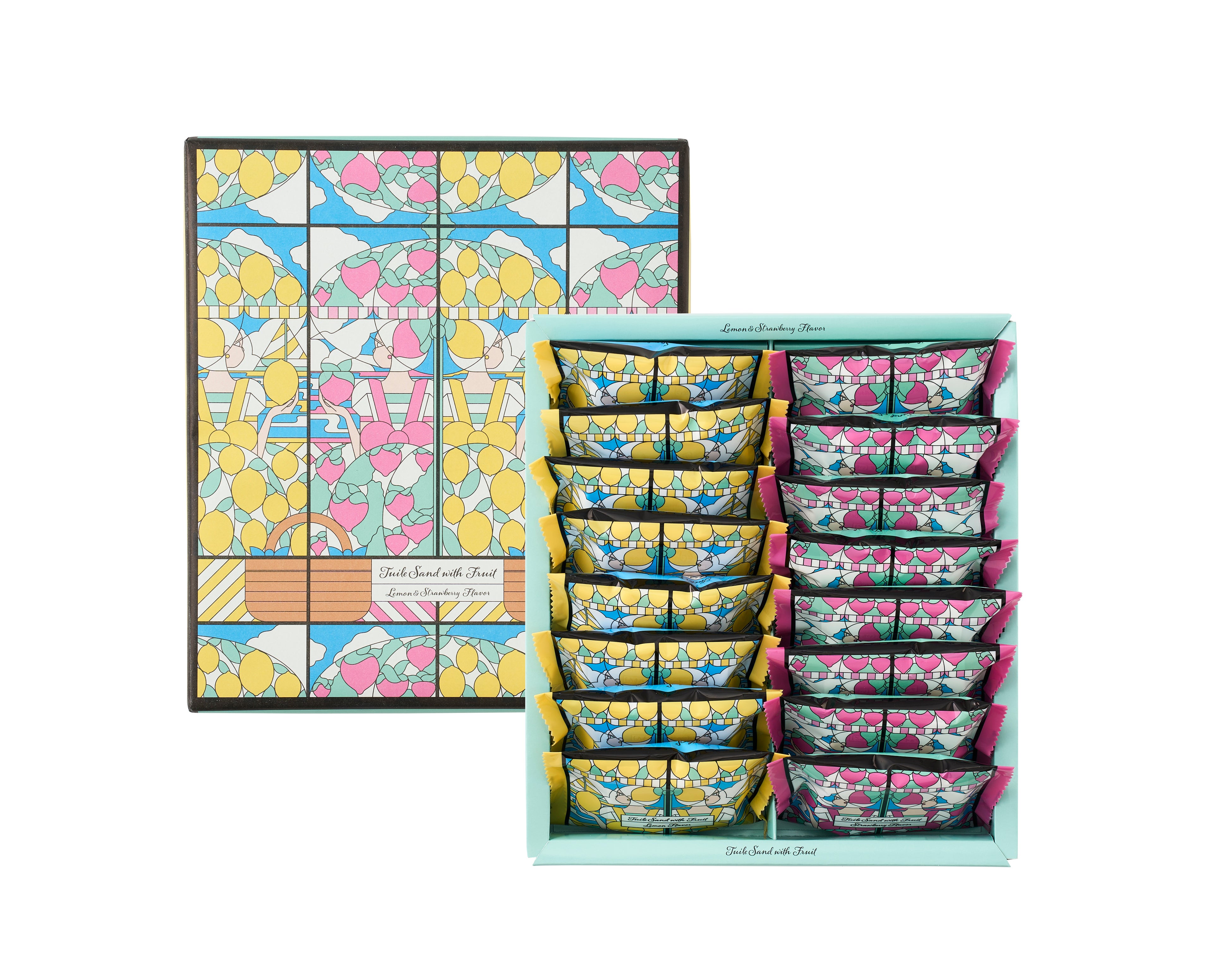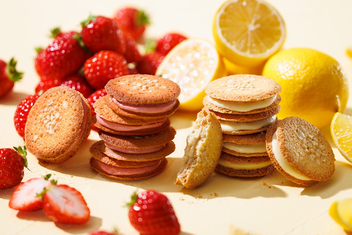 サクサクとした軽やかな食感のチュイールに、 あまおう苺の味わいとシチリア産れもんの味わいをそれぞれサンド。夏を先取りした、見た目にもかわいいチュイールサンドです。
