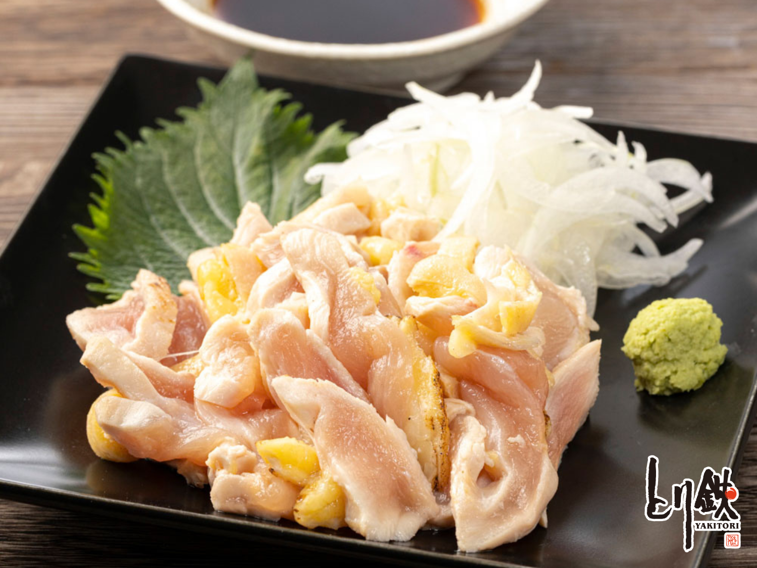 ●親鶏むね肉の炙り刺し 〜わさび醤油で〜