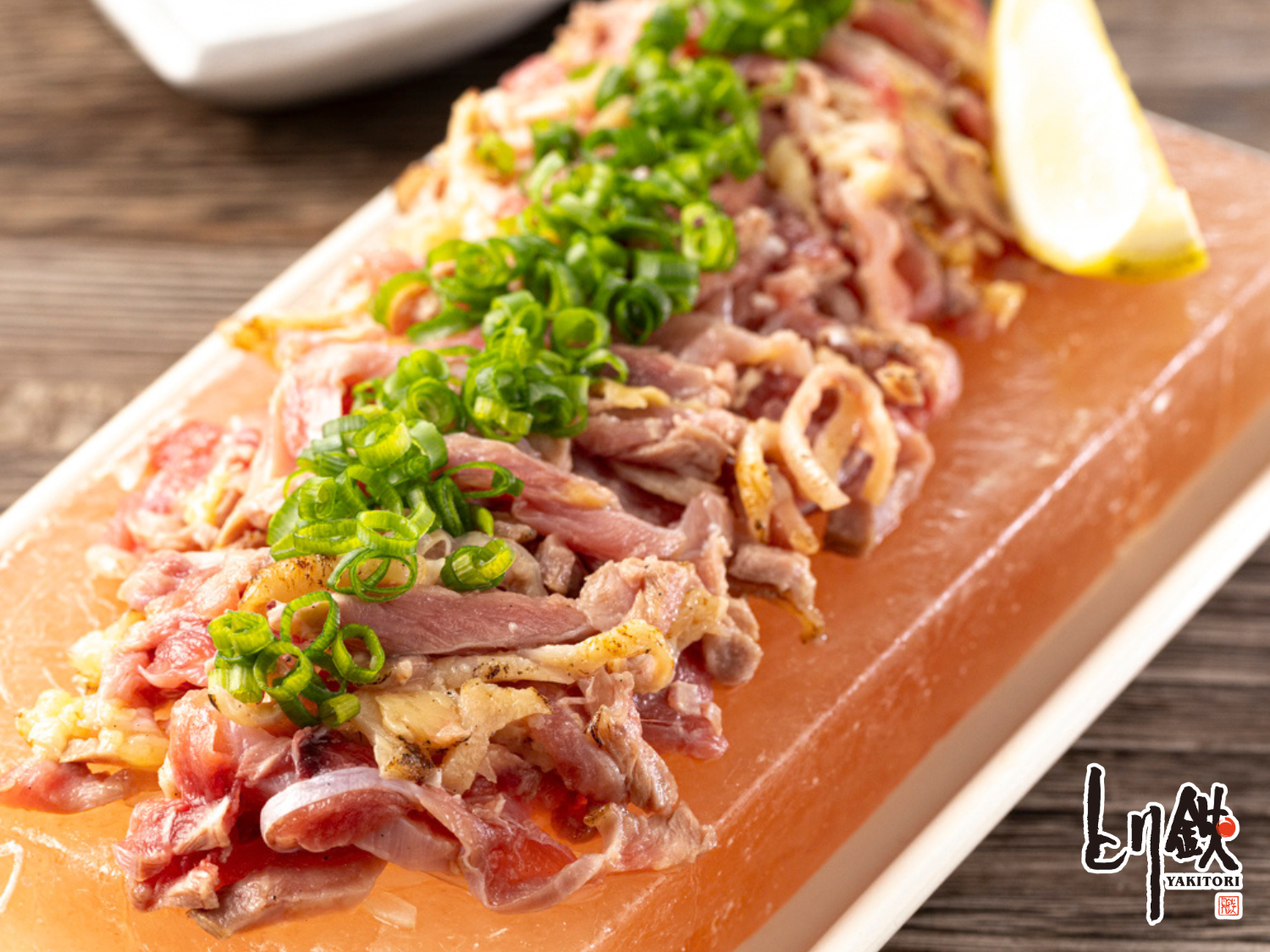 ●親鶏もも肉の炙り刺し 岩塩盛り