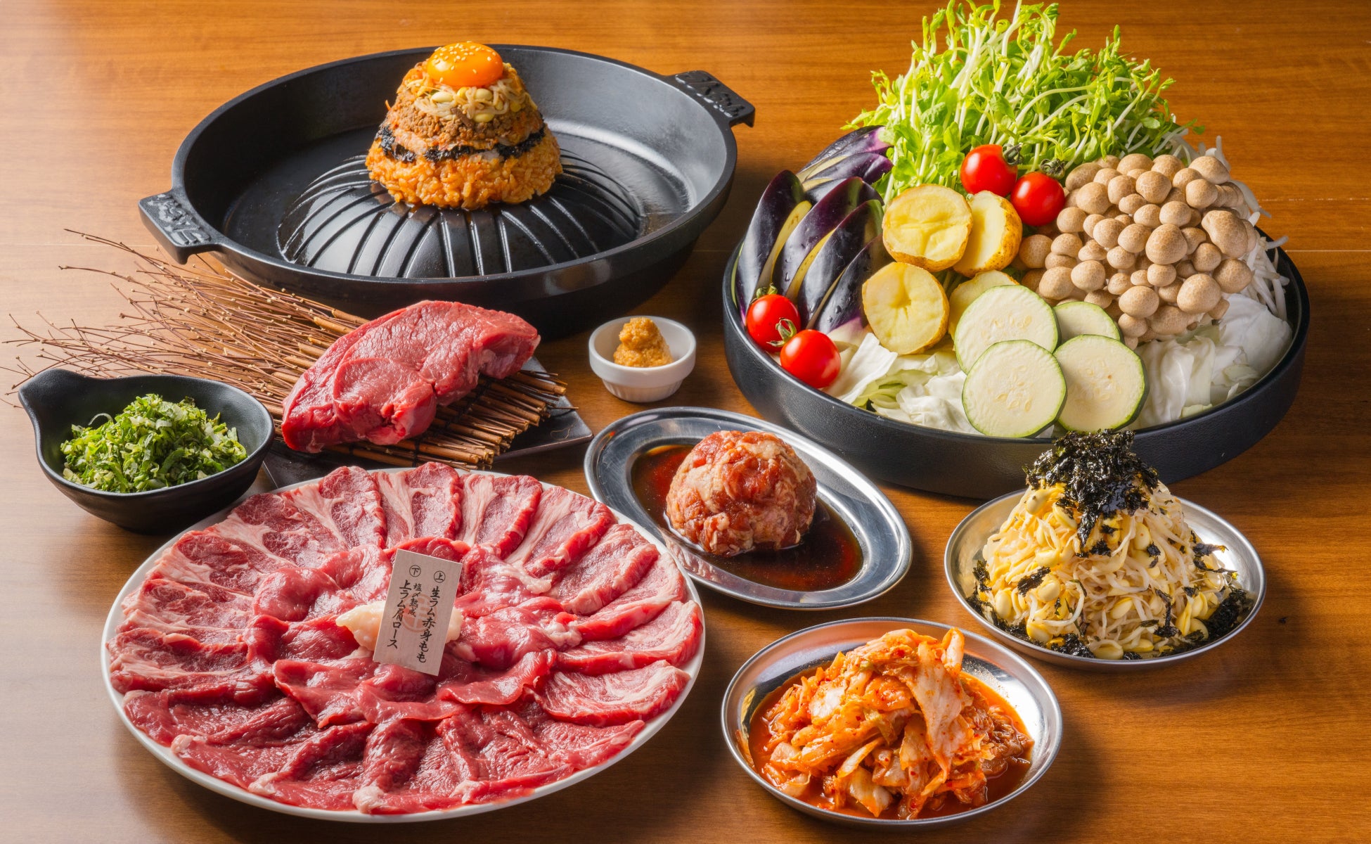 【ラムちゃんジンギスカン定食】定番ジンギスカン・漬け込みジンギスカン・国産野菜バイキング・ごはん・スープ 1,780円(税込1,958円) バイキングなし1,280円(税込1,408円)