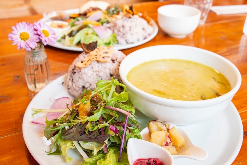 驚いたのがお料理のクオリティ。ご飯が進むメイン料理に栄養価の高い雑穀米、色鮮やかな野菜のサラダに、ていねいに味付けされた副菜の数々と、都心のカフェと比べても全く見劣りしません。