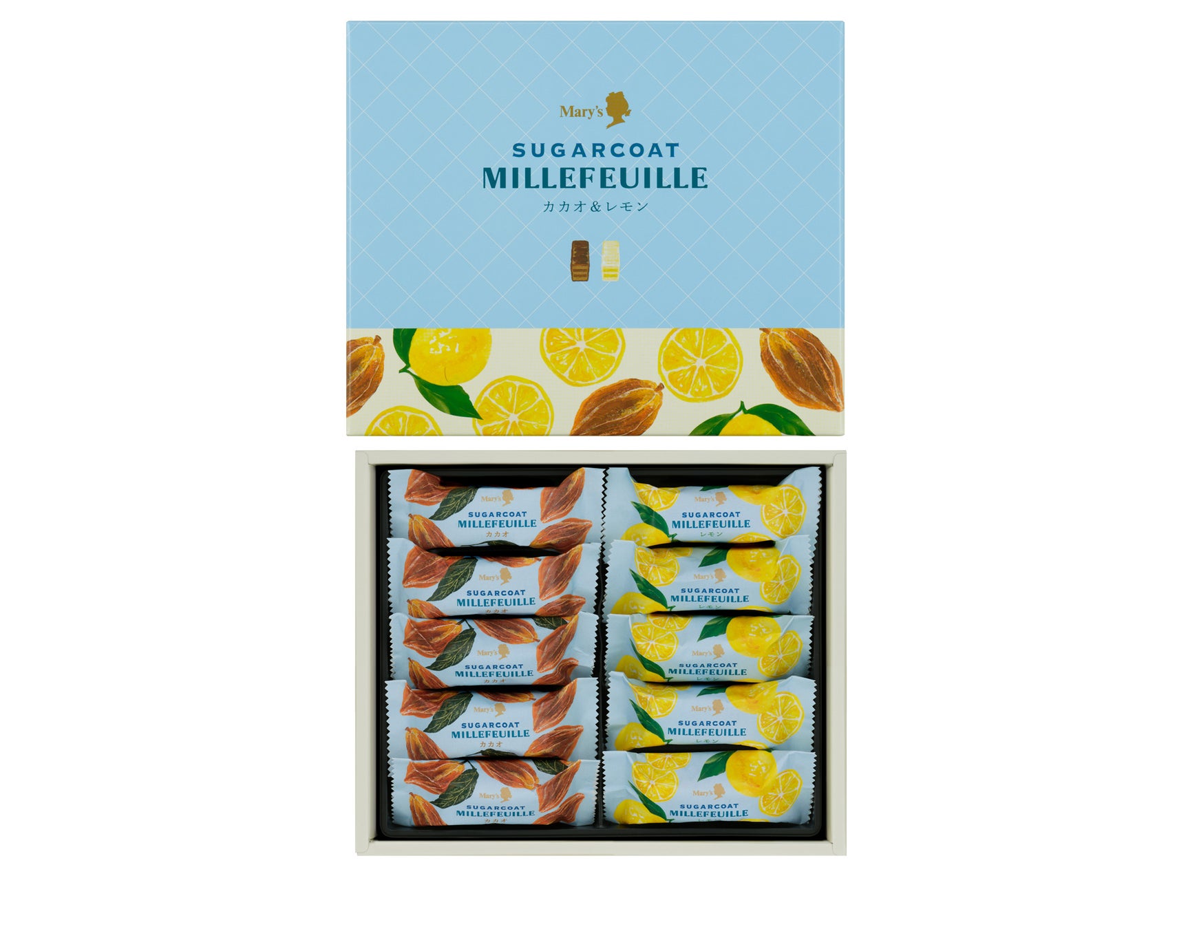 ・夏にぴったりの「レモン」と「カカオ」の味わい:夏でもスッキリとお召し上がりいただけるよう、レモンとカカオの2種類のシュガーコートで仕上げました。