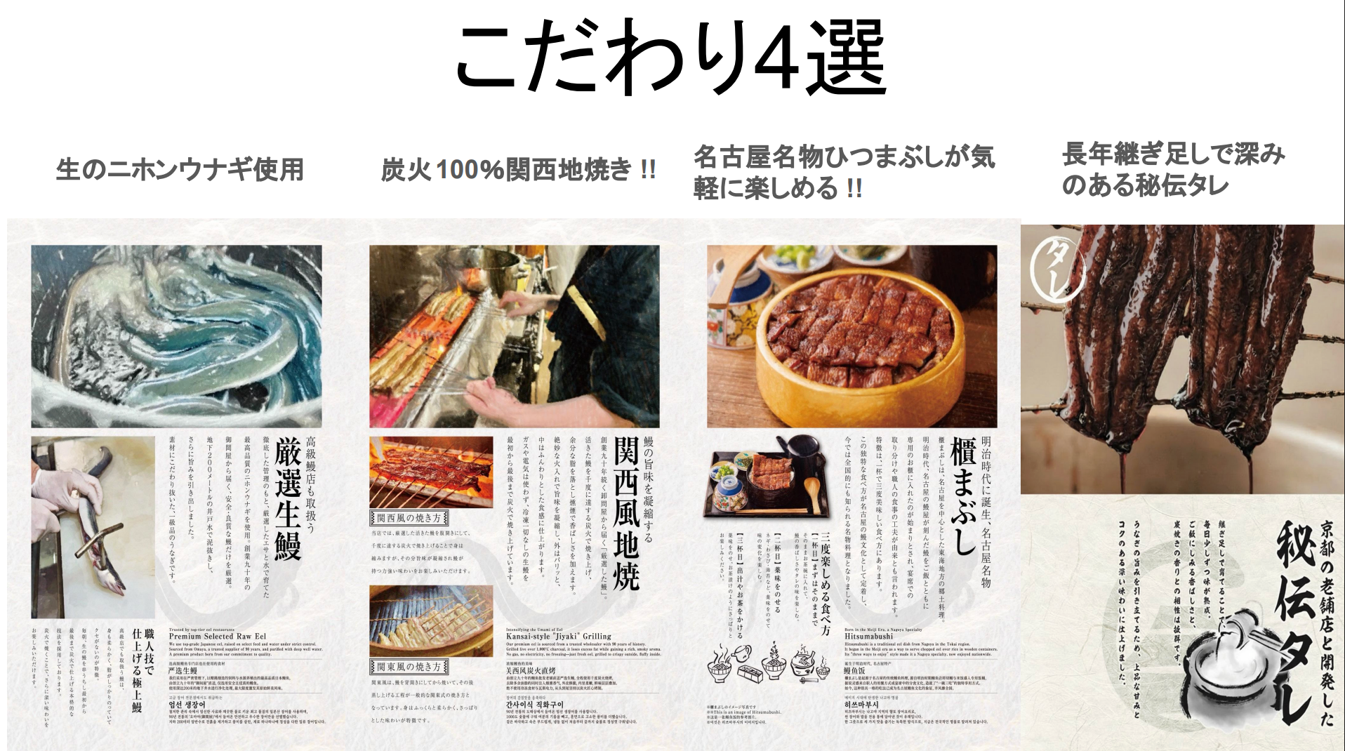 他のうなぎ店にはない「こだわり」と「季節フェア」を実施する事で、年中うなぎを楽しんでもらえるような取り組みを実施