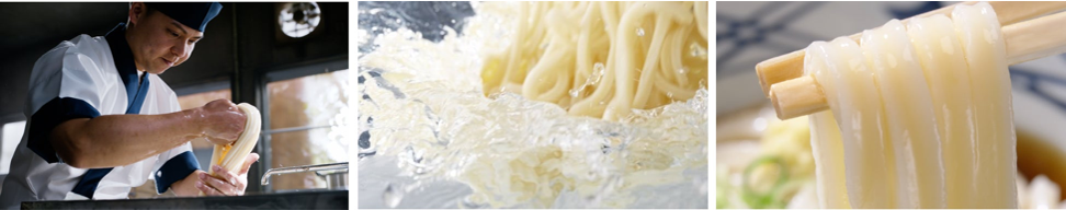 「ここのうどんは、生きている。」をブランドメッセージに掲げ、日々、食の感動体験を探求し手づくりの「おいしいうどん」をお客さまに提供しています。私たちは一軒一軒が製麺所であり、徹底的に鮮度にこだわり、国内800を超えるすべての店で、手間を惜しまず粉からうどんを日々つくり続けています。