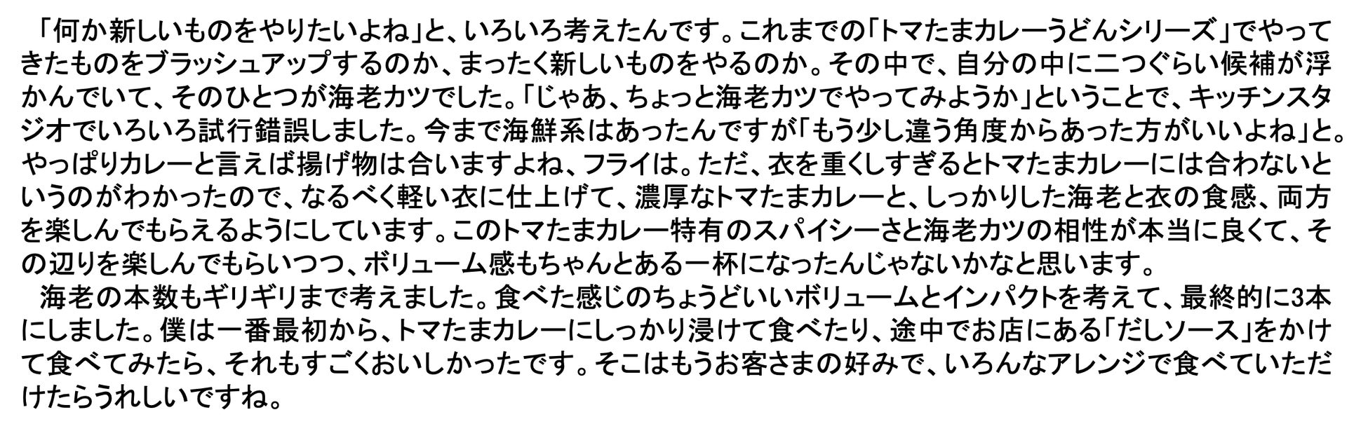 「えびエビ海老の海老カツも!トマたまカレーうどん」インタビュー
