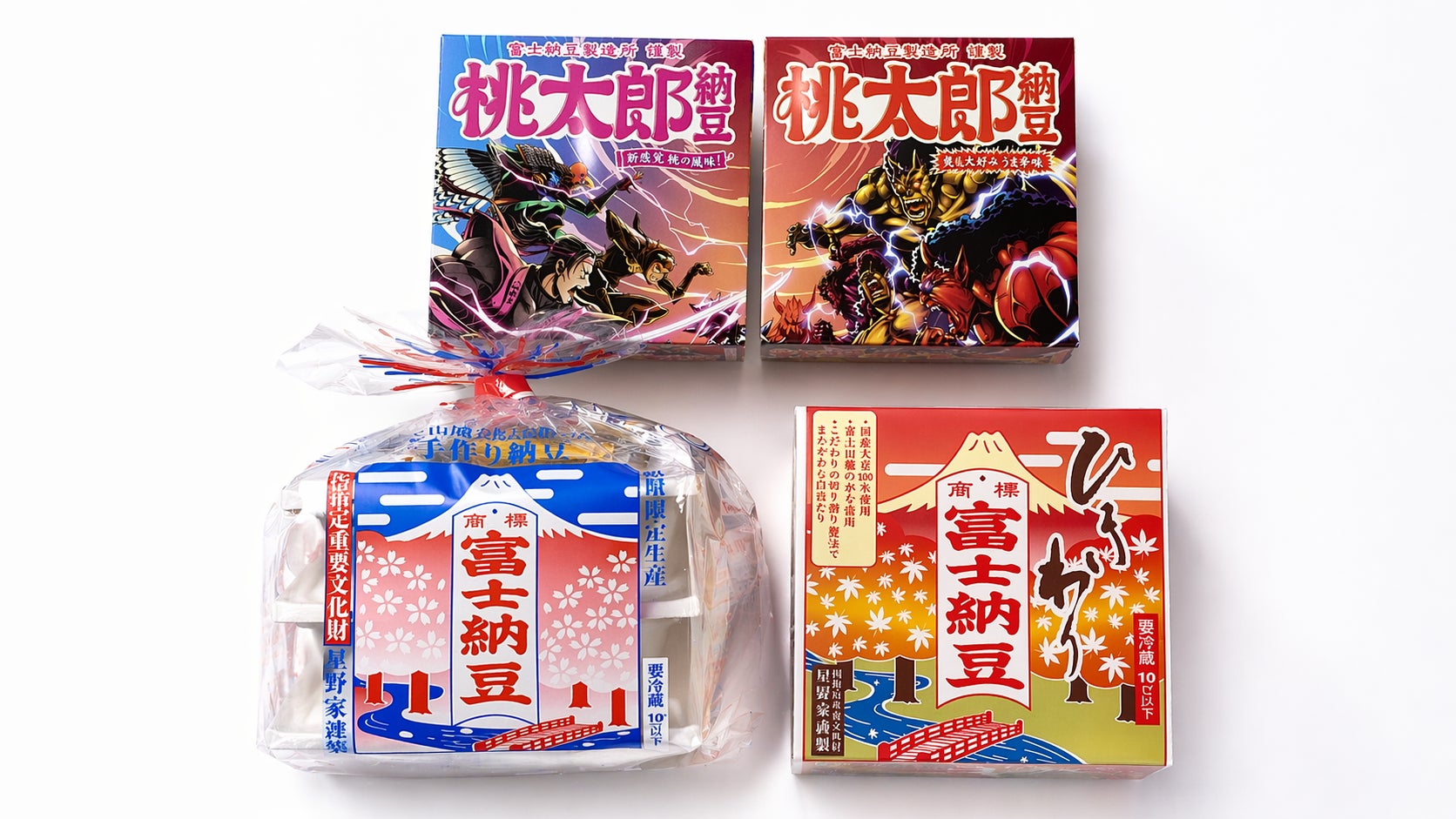 富士納豆製造所では「富士納豆ひきわり」をはじめ、定番商品や個性ある味わいを詰め合わせた「富士納豆アソートセット」を新たに発売しました。