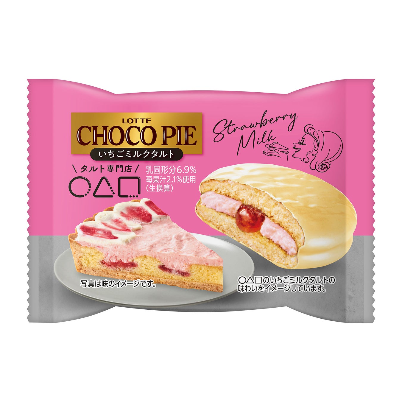 「チョコパイ<いちごミルクタルト>個売り」は、いちごミルクタルトのタルトの香ばしさ、いちごの酸味、ミルクのコクをバランスよく感じられるように仕立てました。