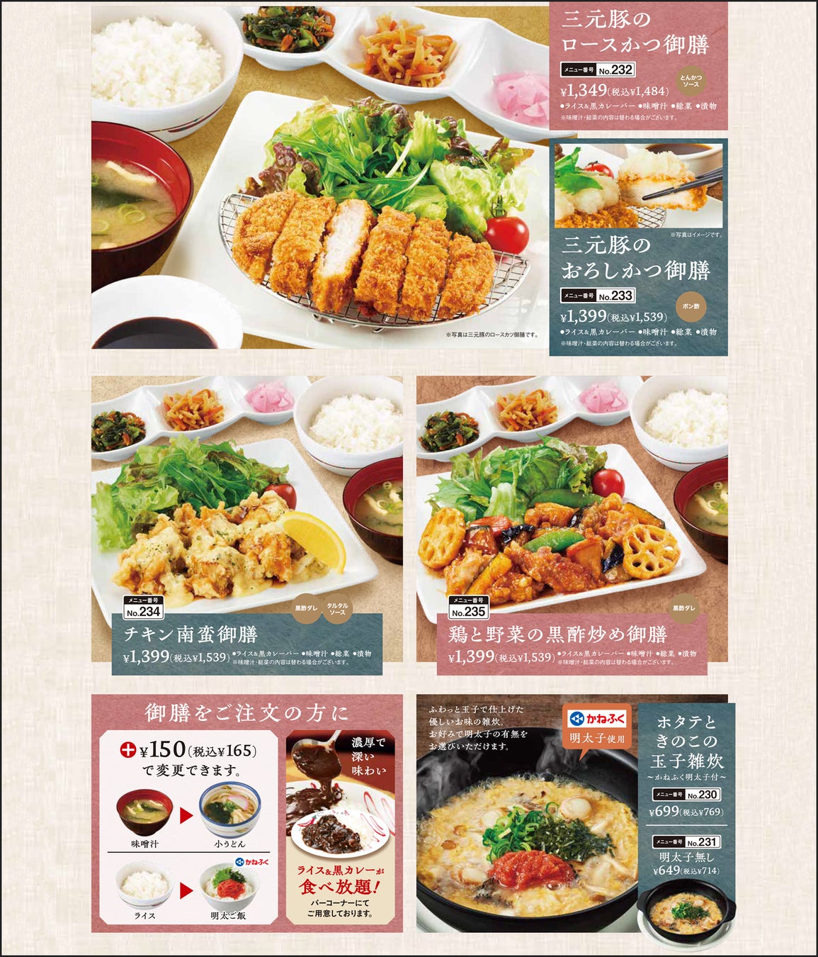 あらゆる世代のお客様に、幅広いメニューの中から好みに合わせてお選びいただける内容となりました。