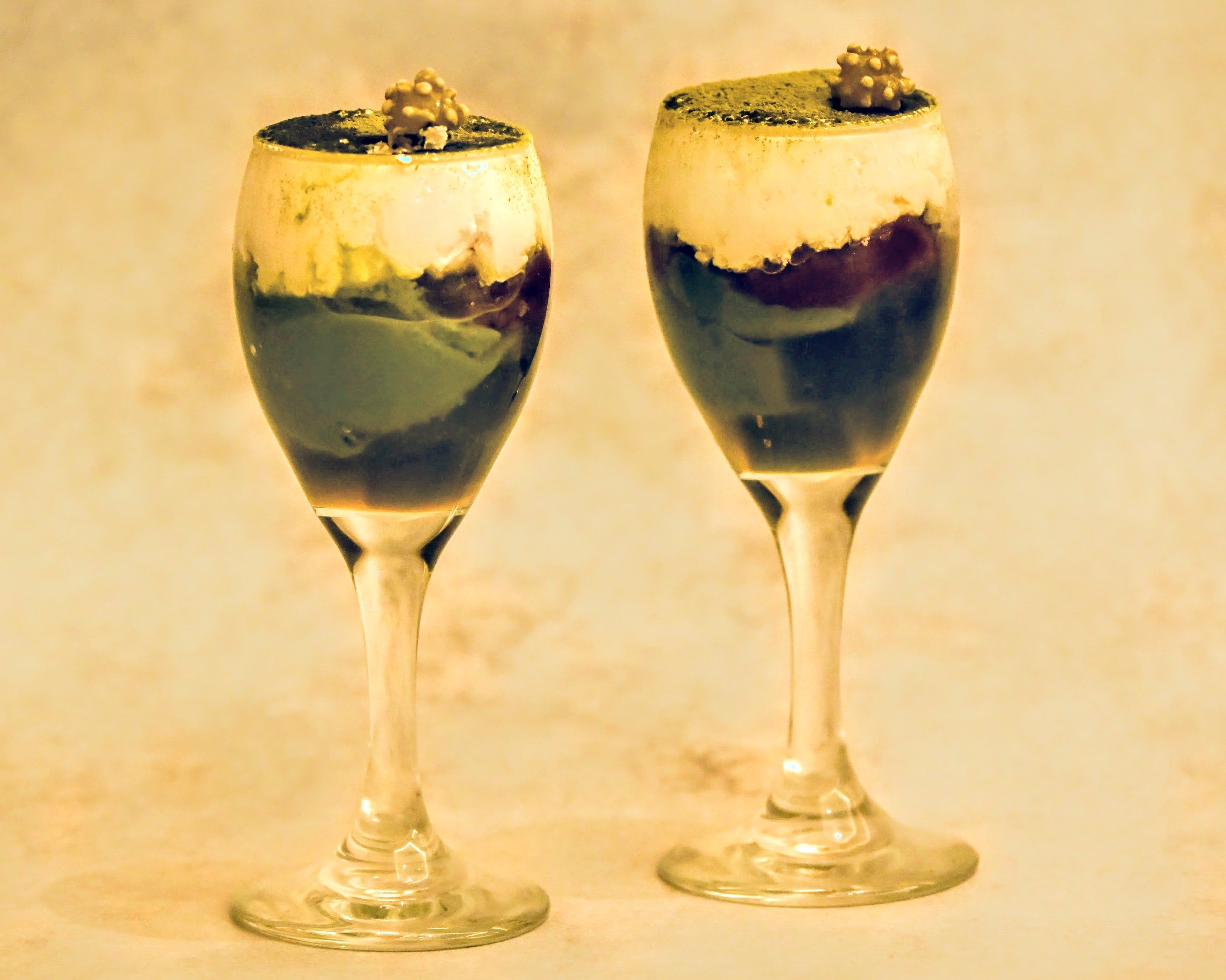 抹茶の風味を軽やかに楽しめる一品として、全体の構成にアクセントを加えます。