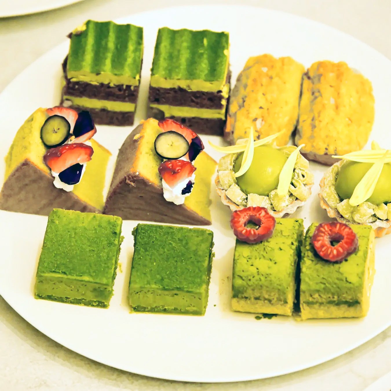 スイーツには、宇治抹茶を使用したなめらかな抹茶のテリーヌや、軽やかな口当たりの抹茶シフォンケーキ、香り豊かな抹茶ロールケーキなどをご用意。