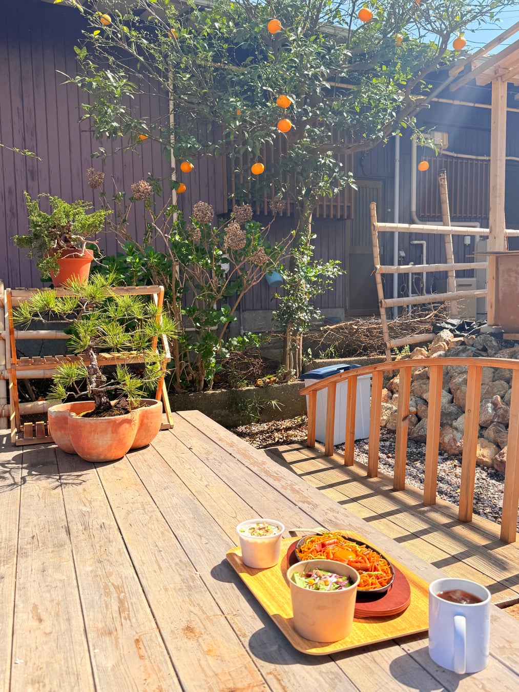 庭、光、風、コーヒー、そしてベーグル。