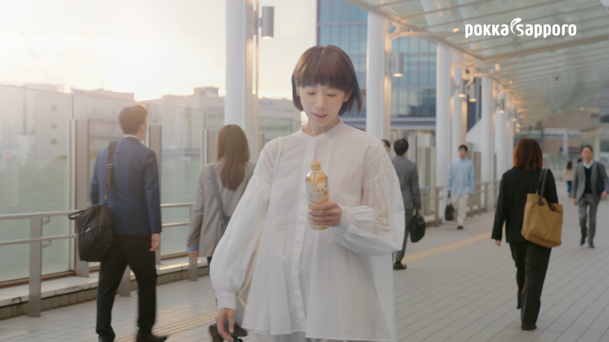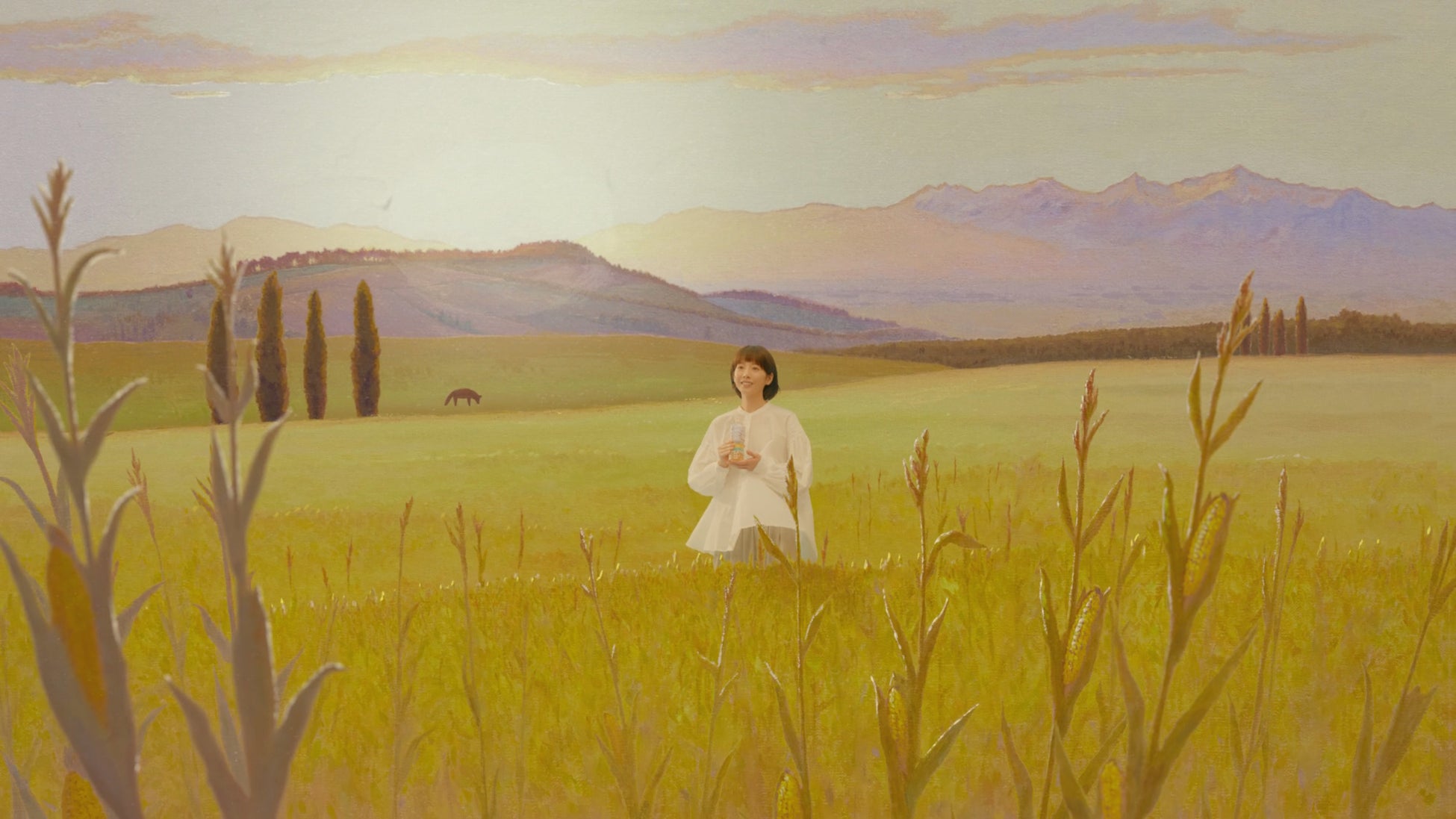 夏帆さんが都会の喧騒の中で一口飲んだ瞬間、景色が柔らかな油彩画の世界へと変わり、北海道の広大な畑やキタキツネが登場。甘く香ばしい味わいに包まれます。心がほどけた夏帆さんは、現実へ戻ると清々しい笑顔が溢れ、再び歩み始めます。