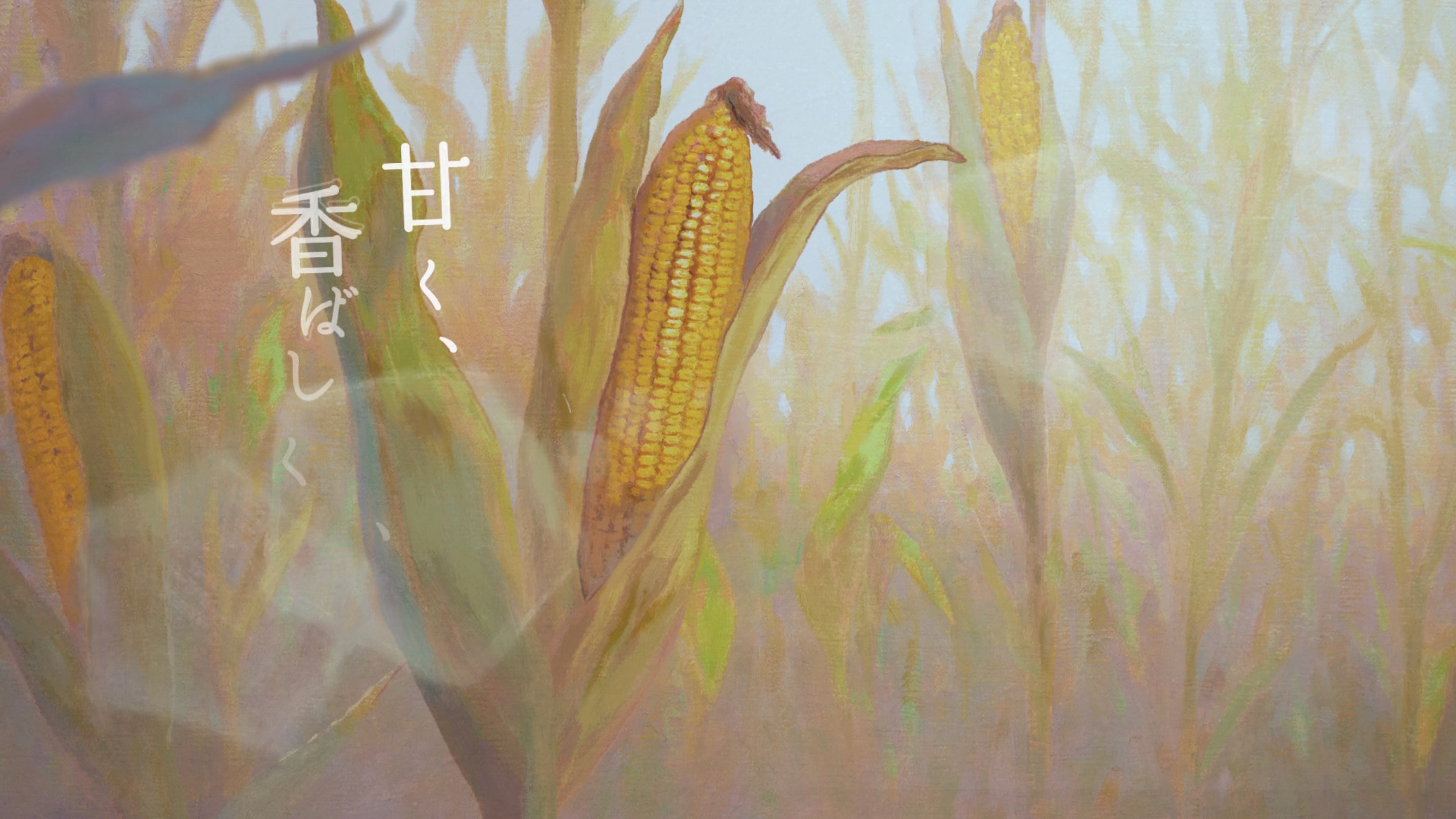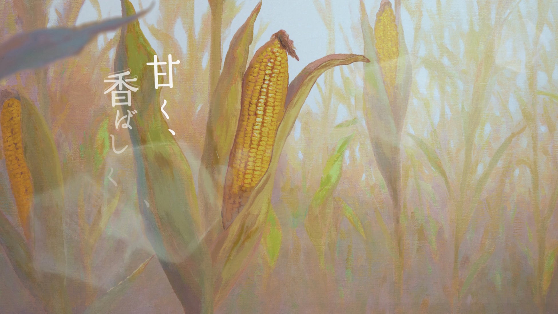 本CMでは、「北海道コーン茶」が持つ“日常の喧騒を忘れてやすらげる心地よさ”と、“素材や製法にこだわり抜いたものづくり”を、夏帆さんの演技と画家・野口俊介氏による油彩画が織りなす世界で表現しています。「北海道コーン茶」を味わう夏帆さんの背景には、野口氏が描き下ろした北海道の台地やとうもろこし畑を想起させる本格的な油彩画を使用。「北海道コーン茶」のボトルに描かれた、北海道の広大な畑のイラストを柔らかなタッチで再現しています。