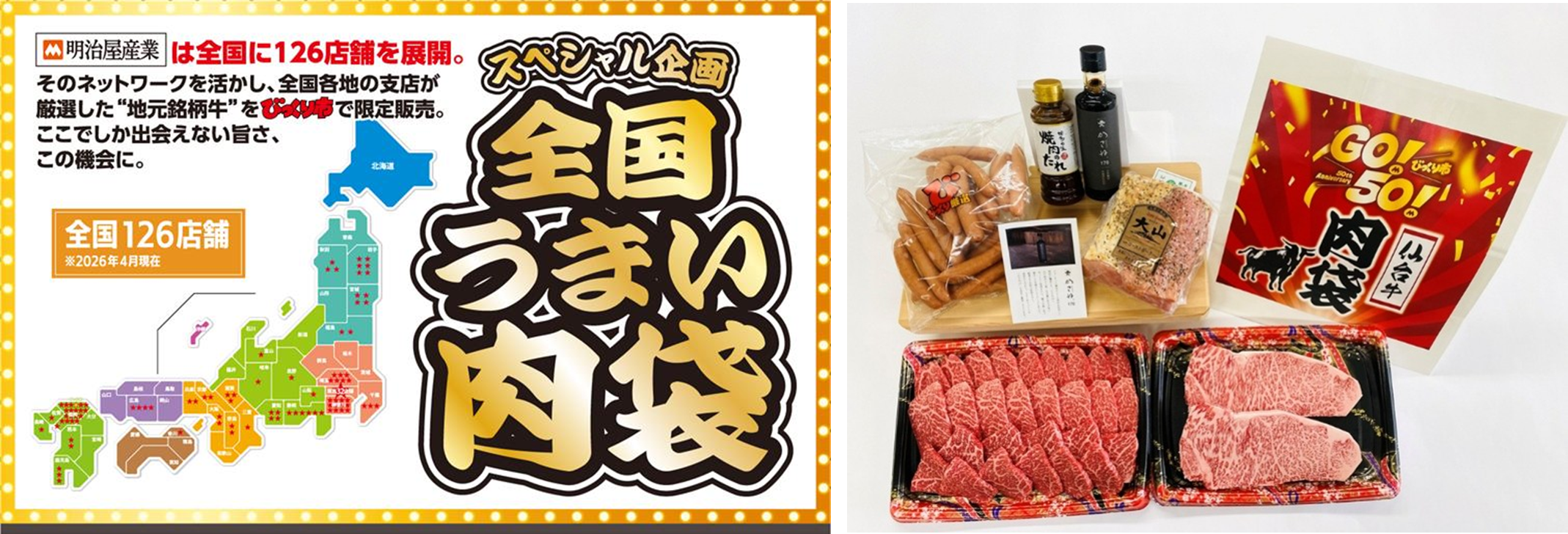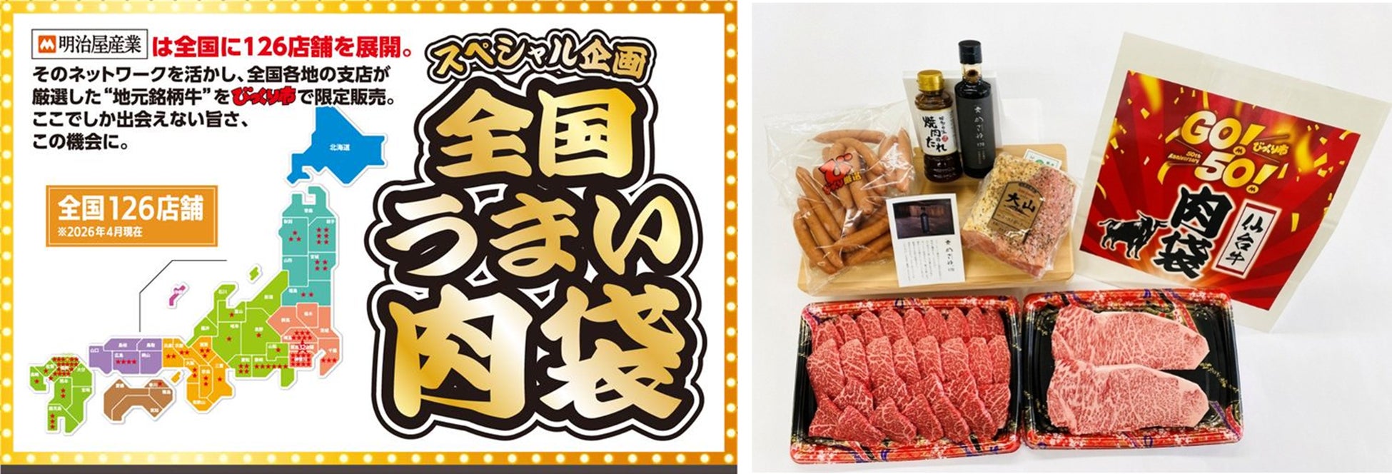 全国126店舗を展開する明治屋産業の強みを活かし、各地の支店が厳選した「地元銘柄牛」の スペシャルセットを販売します。