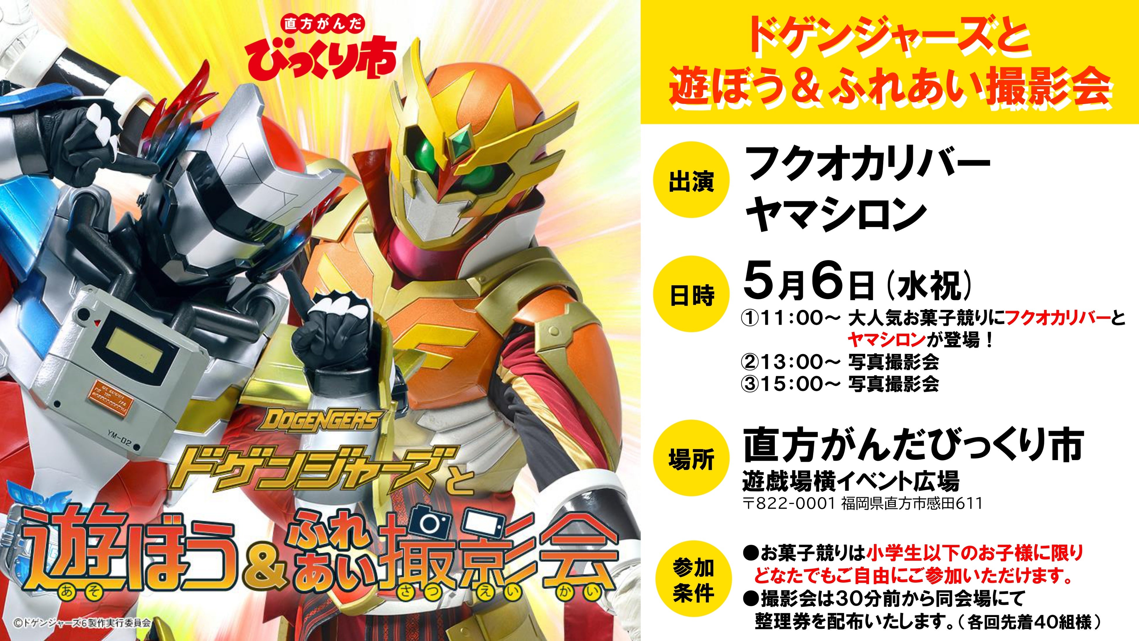 福岡を代表する特撮ヒーロー「ドゲンジャーズ」とのスペシャルコラボが決定。 店頭イベントやSNS発信を通じ、お子様から大人まで楽しめる「直方がんだ びっくり市」を演出します。
