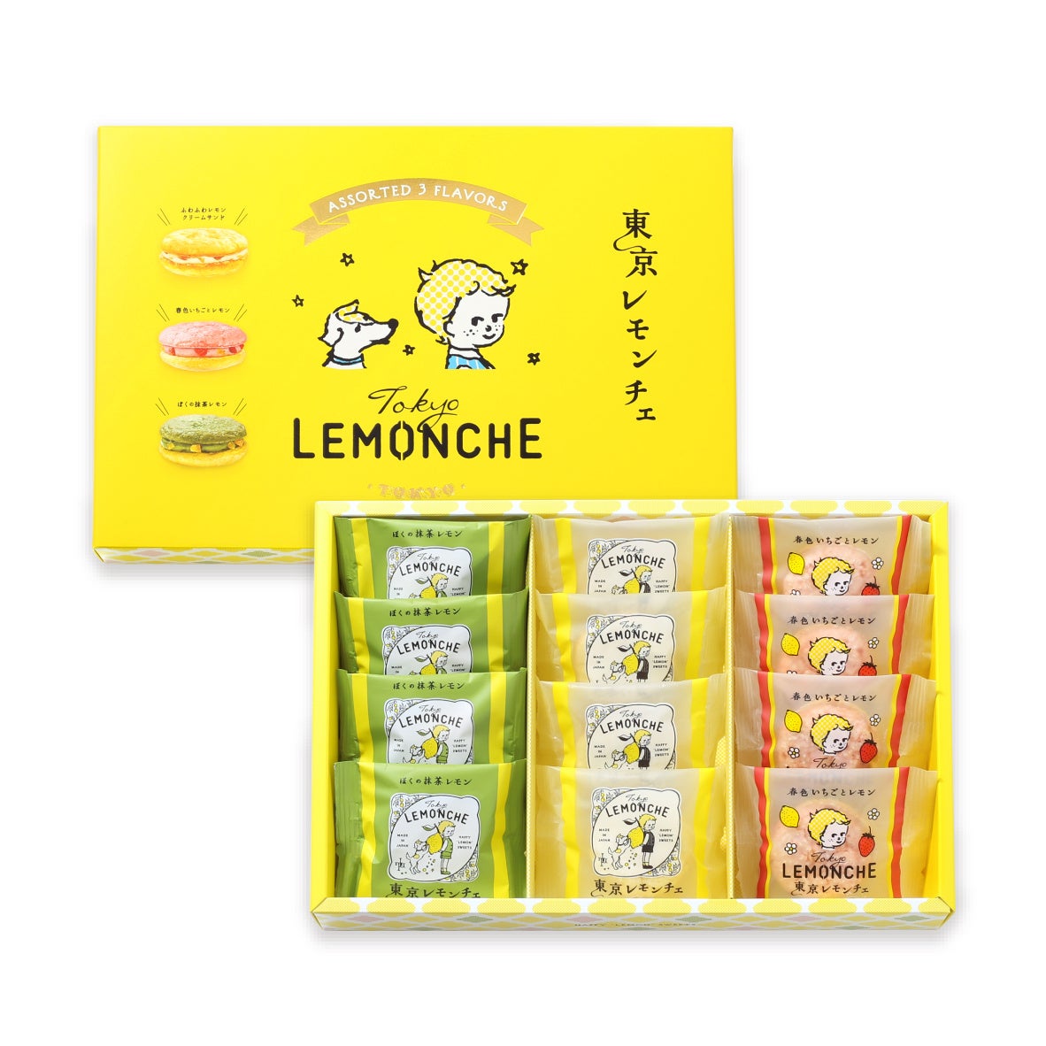 【内容】12個入(ふわふわレモンクリームサンド、春色いちごとレモン、ぼくの抹茶レモン 各4個)