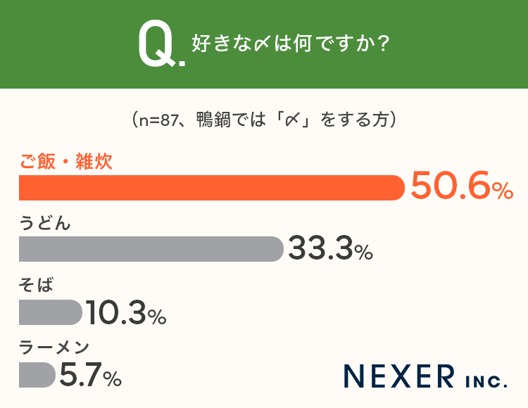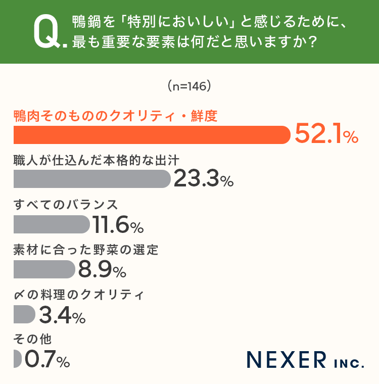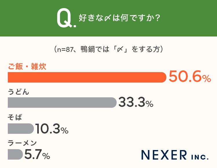 株式会社NEXER・鴨鍋の”素材・〆”へのこだわりと満足度に関する調査