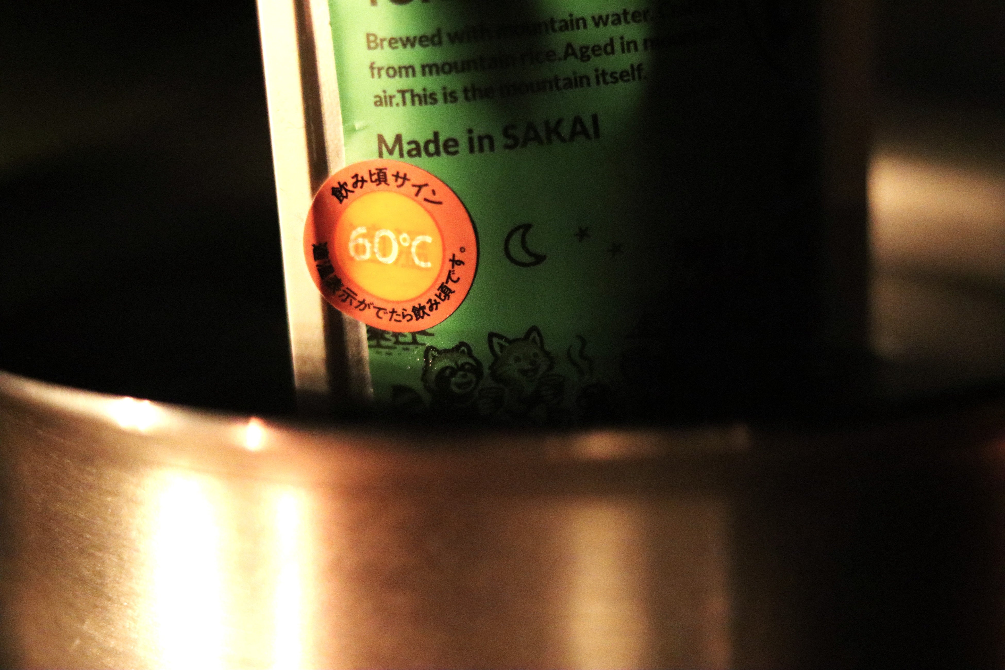 燗にして温度が約60度になると、シールの表示が「60℃」から「適温」に変わり、飲み頃を知らせます。