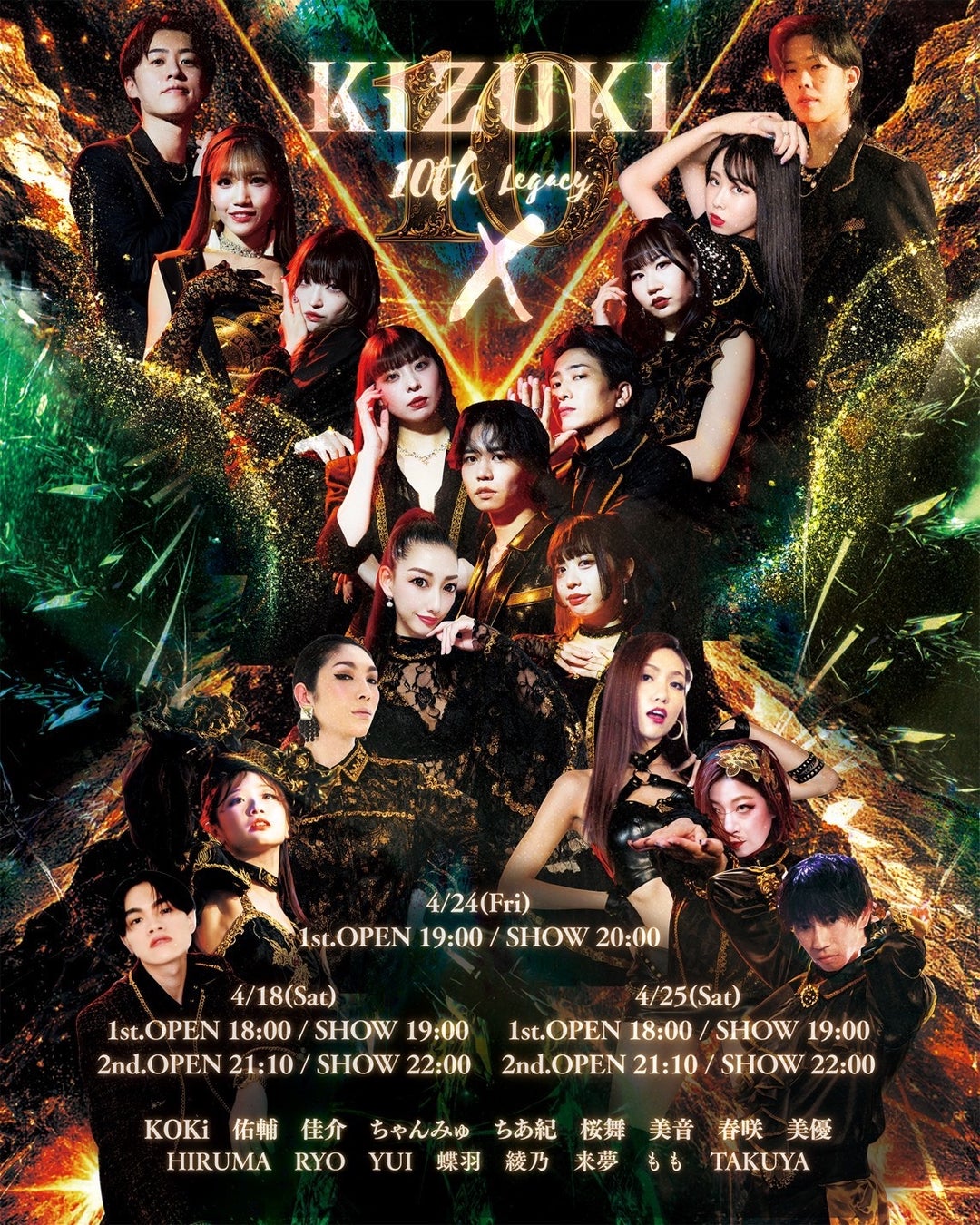 これを記念し、10周年記念ショー「KIZUKI 10TH LEGACY『X-エックス-』」を4月18日(土)・24日(金)・25日(土)の3日間、全5公演にわたって上演いたします。