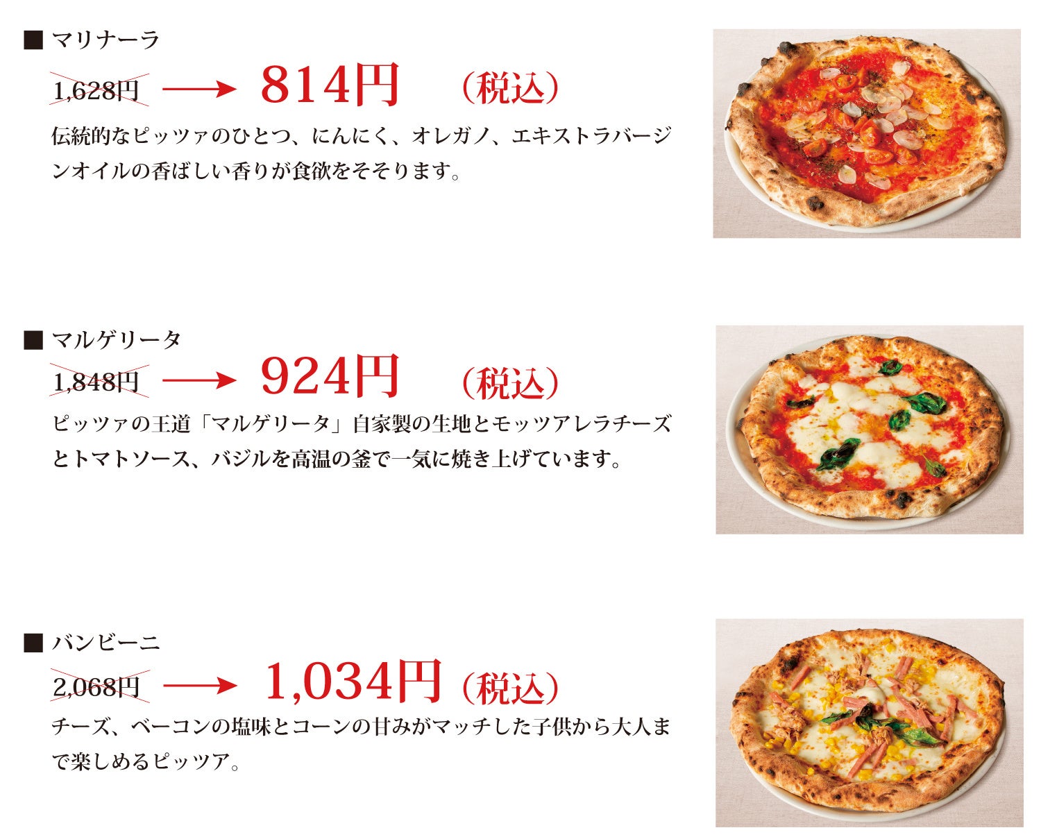 ~ マルゲリータなど、ピッツァ3メニューが一日限りの半額! ~
