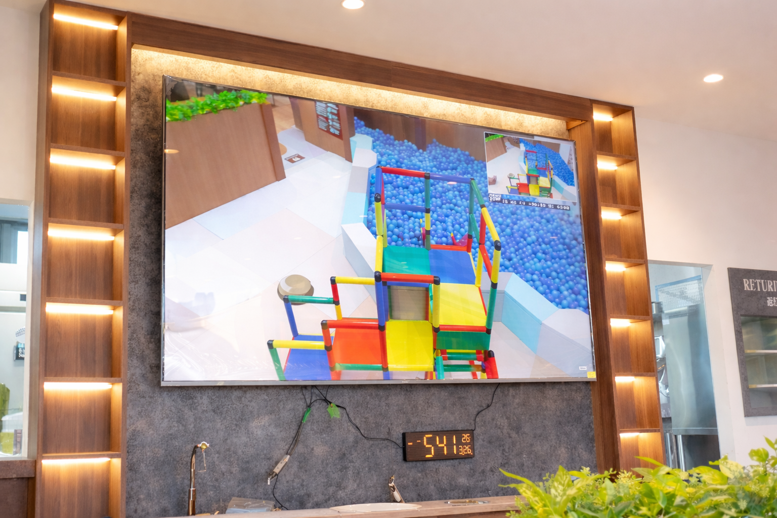 さらに、株式会社 TOMODY 開発の見守りシステム「WRIDGE RCA」と大画面モニターを導入し、カフェ席からもキッズルームの様子をリアルタイムで確認できる環境を整えました。これにより、子どもを見守りながらでも、安心して食事やカフェタイムをお楽しみいただけます。