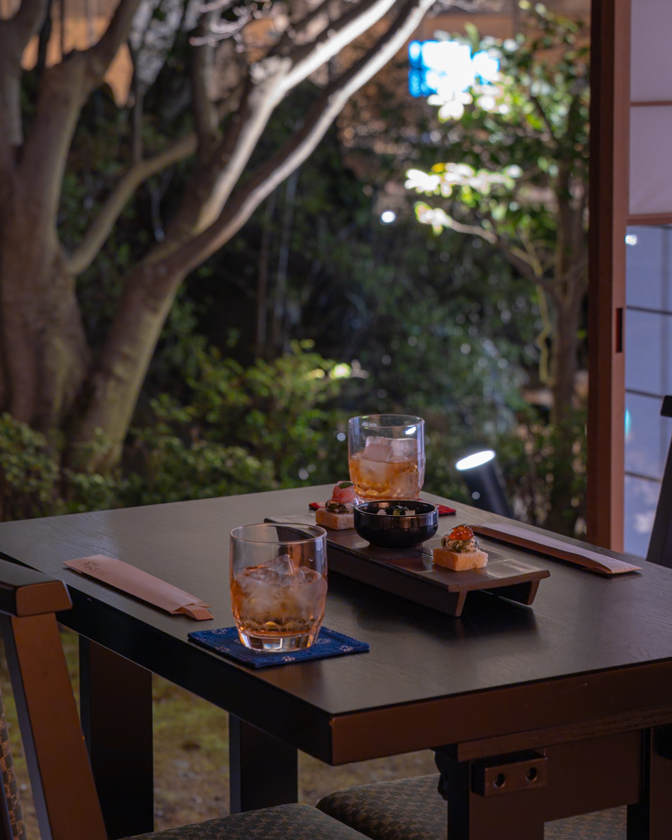 静寂を伴う非日常な空間で、ライトアップでひときわ美しく輝く緑をながめながら、おとなの時間をお楽しみください。