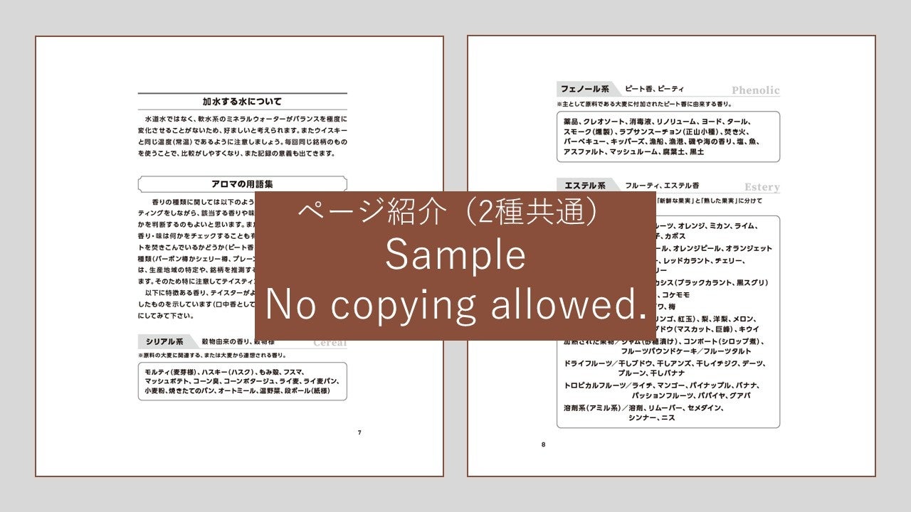 このノートは、テイスティングの面白さや基礎知識、用語などをまとめたノートになっており、ウイスキー以外の蒸留酒にもご活用いただけます。初級者から上級者まで幅広くご利用いただける一冊となっております。