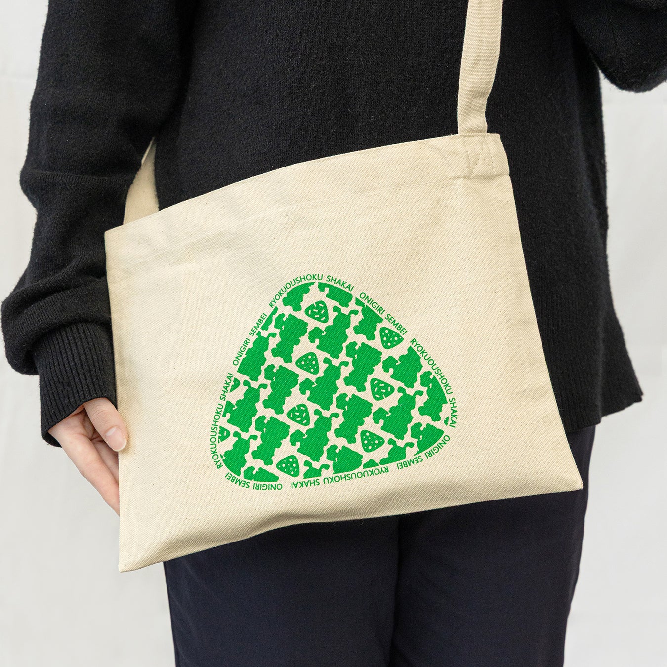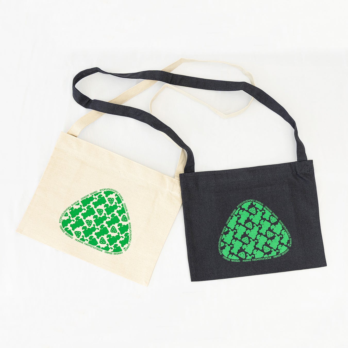 また、コラボパッケージとマスヤの人気商品を詰め合わせた限定セットも販売いたします。サコッシュはおにぎりせんべいを象徴する三角のモチーフに、緑黄色社会のマスコットキャラクター「ブロッコリー」&「カリフラワー」のシルエットを配したデザイン。控えめながら存在感のあるデザインで、ライブシーンにも日常にも自然に溶け込みます。