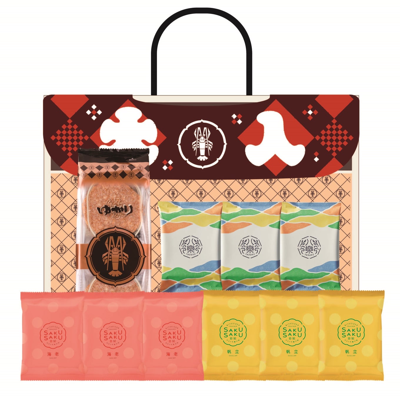 ・内容:合計1,660円(税込)分の商品をお値打ちに販売。坂角を代表する〈ゆかり〉、〈さくさく日記〉、〈八樂〉の3種類のえびせんべいを詰め合わせました。