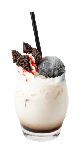 重厚な外殻をクッキーと黒ごまアイスで再現しました。