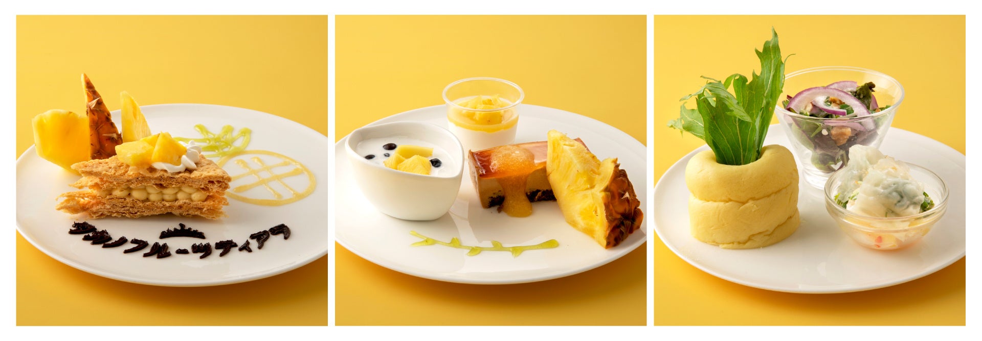 キャラメルケーキ~パインソースがけ~/パインのココナッツミルク/アングレーズムース~パイン仕立て~
